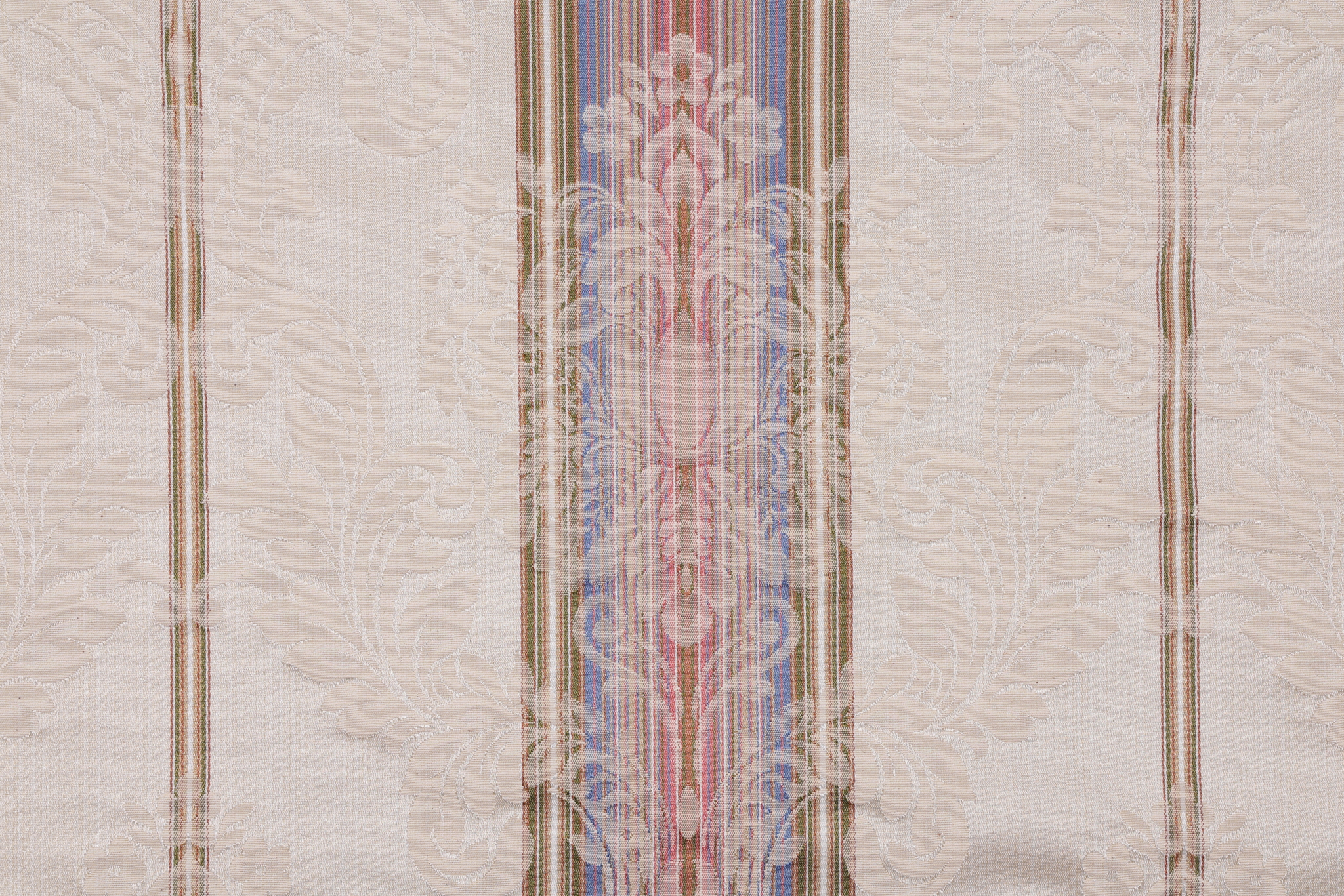 Isabel Stripe Damask Decorator Fabric in Multi/Ivory Details