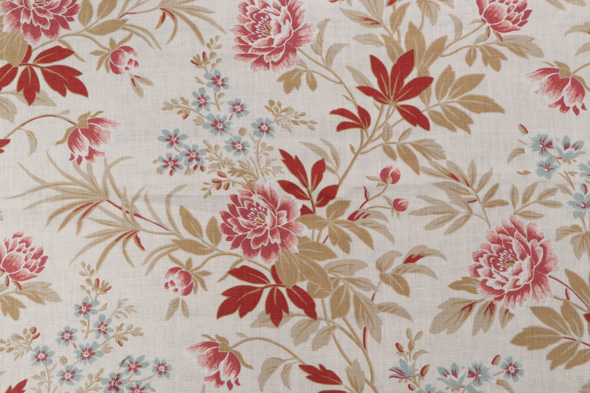 .88 Yards French General Florette Printed Linen Drapery Fabric in Rouge for Fabricut Details