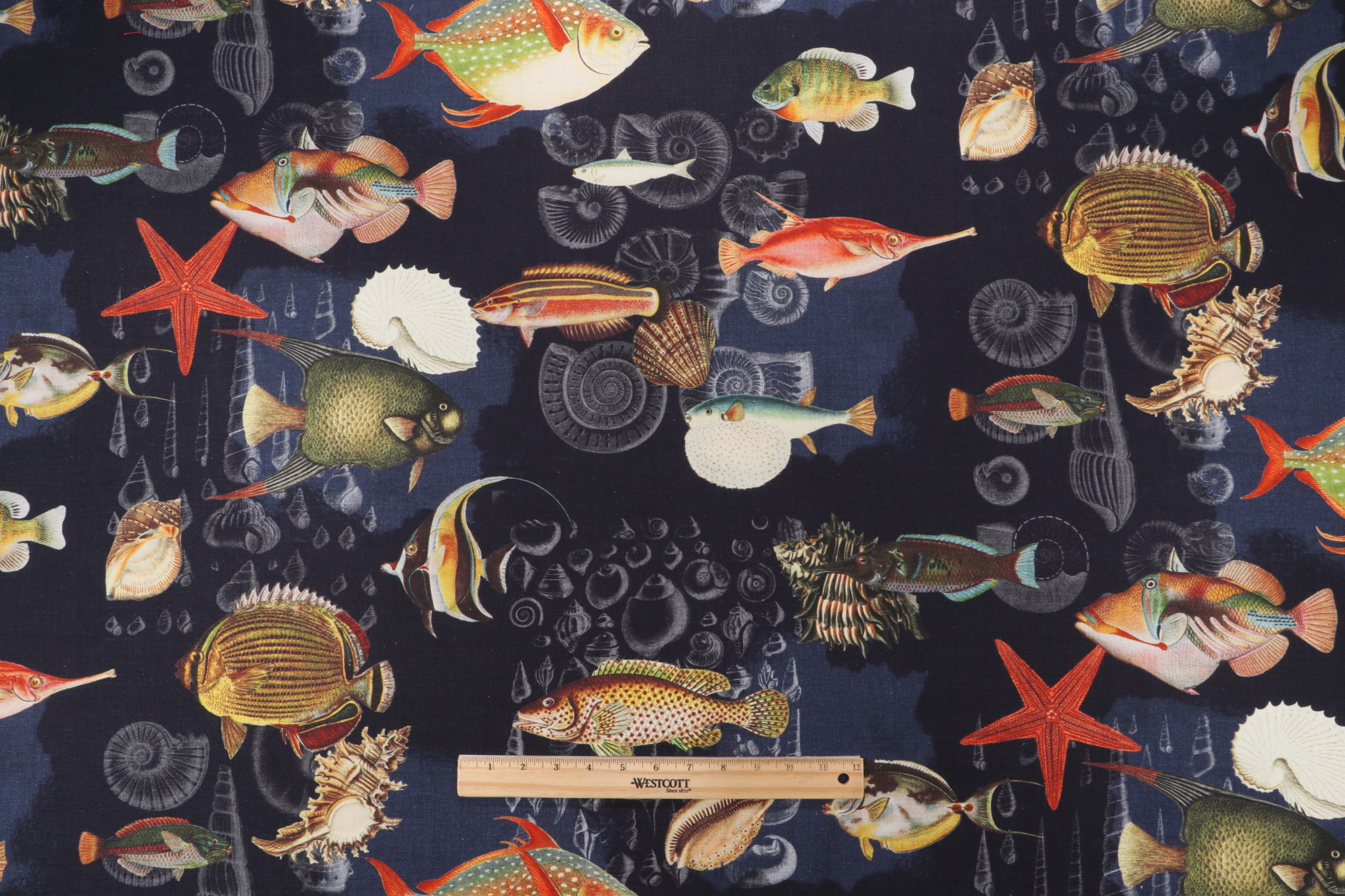 8.63 Yards Hamilton Maldives Printed Cotton Drapery Fabric in Marine Details