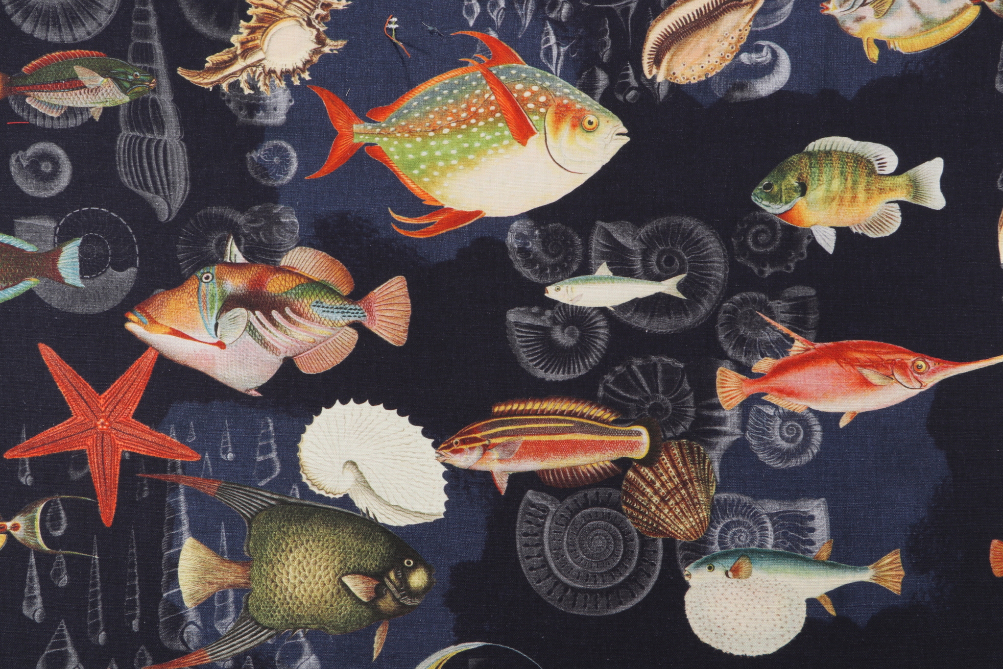 Hamilton Maldives Printed Cotton Drapery Fabric in Marine is a remnant, which is sold as a whole piece.