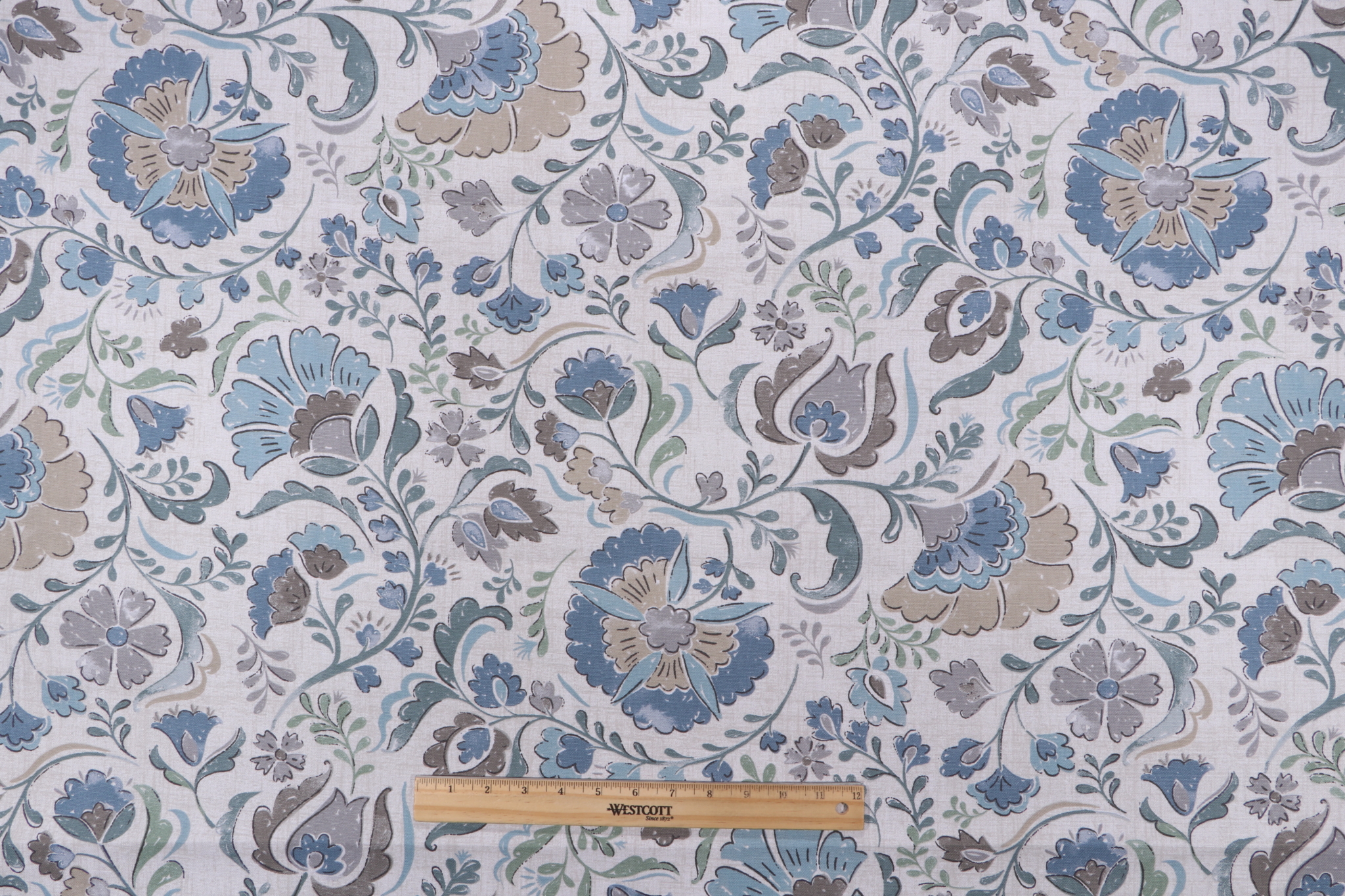 Magnolia Home Alice Printed Cotton Drapery Fabric in Denim Details