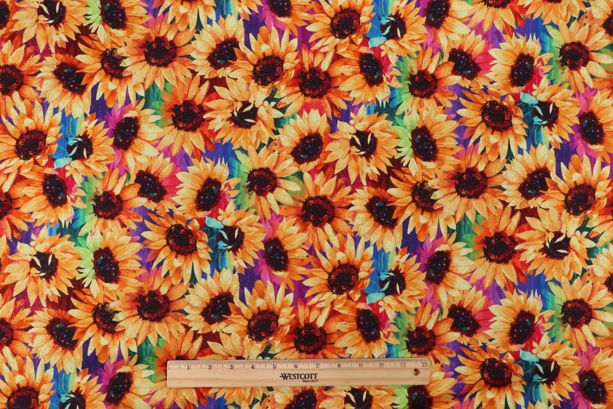 If you order multiple yards of Chong-A Hwang Fabrics of SoHo Sundance - Packed Sunflowers Printed Cotton Craft Fabric in Multi for Timeless Treasures we try to ship a single piece. For longer lengths, it is possible that we may not be able to supply the entire yardage as a single uncut piece, but if this is the case we will notify you for approval before shipment.