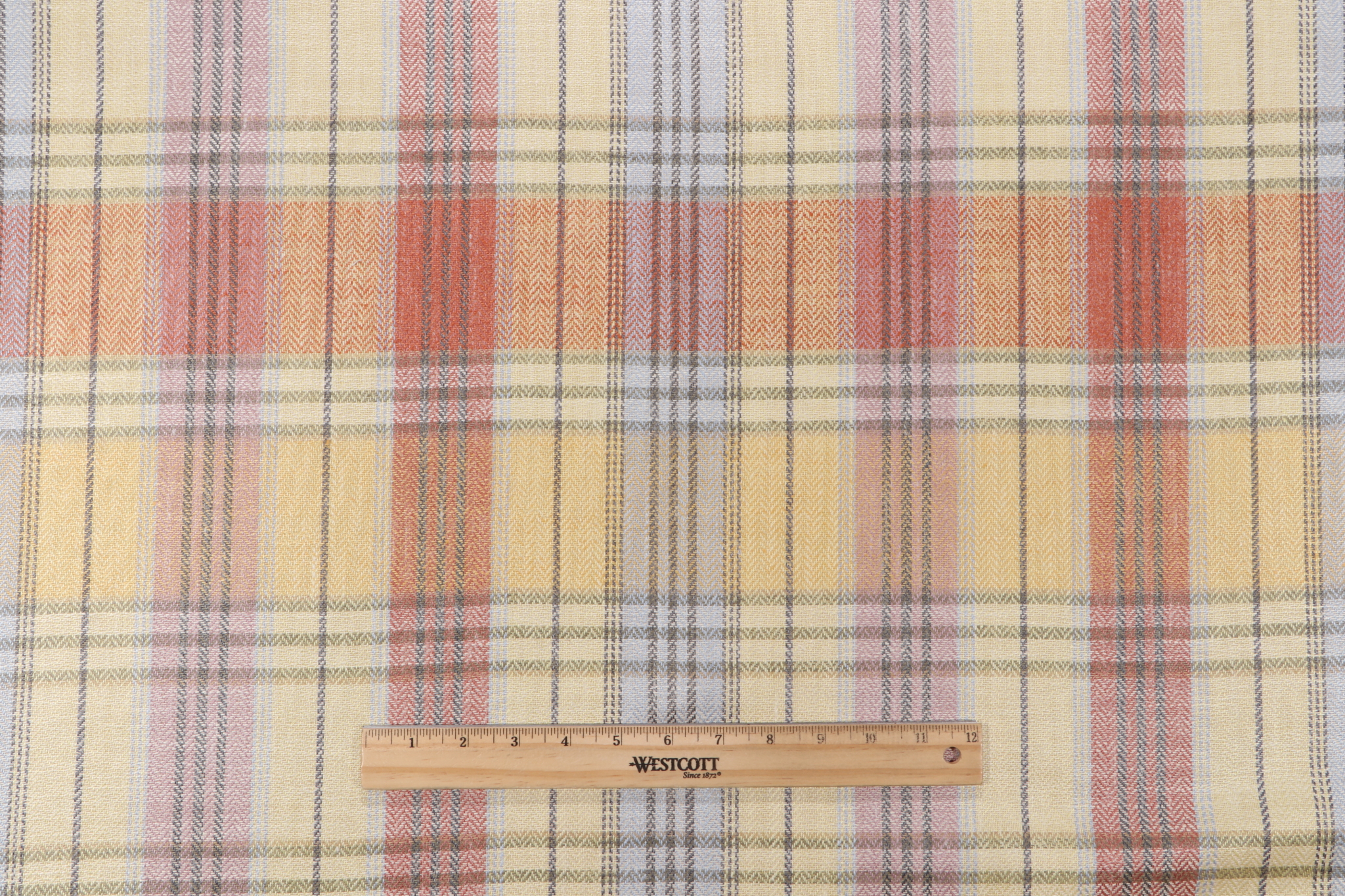 8.88 Yards Grey Watkins Presidio Plaid Woven Decorator Fabric in Coral Details