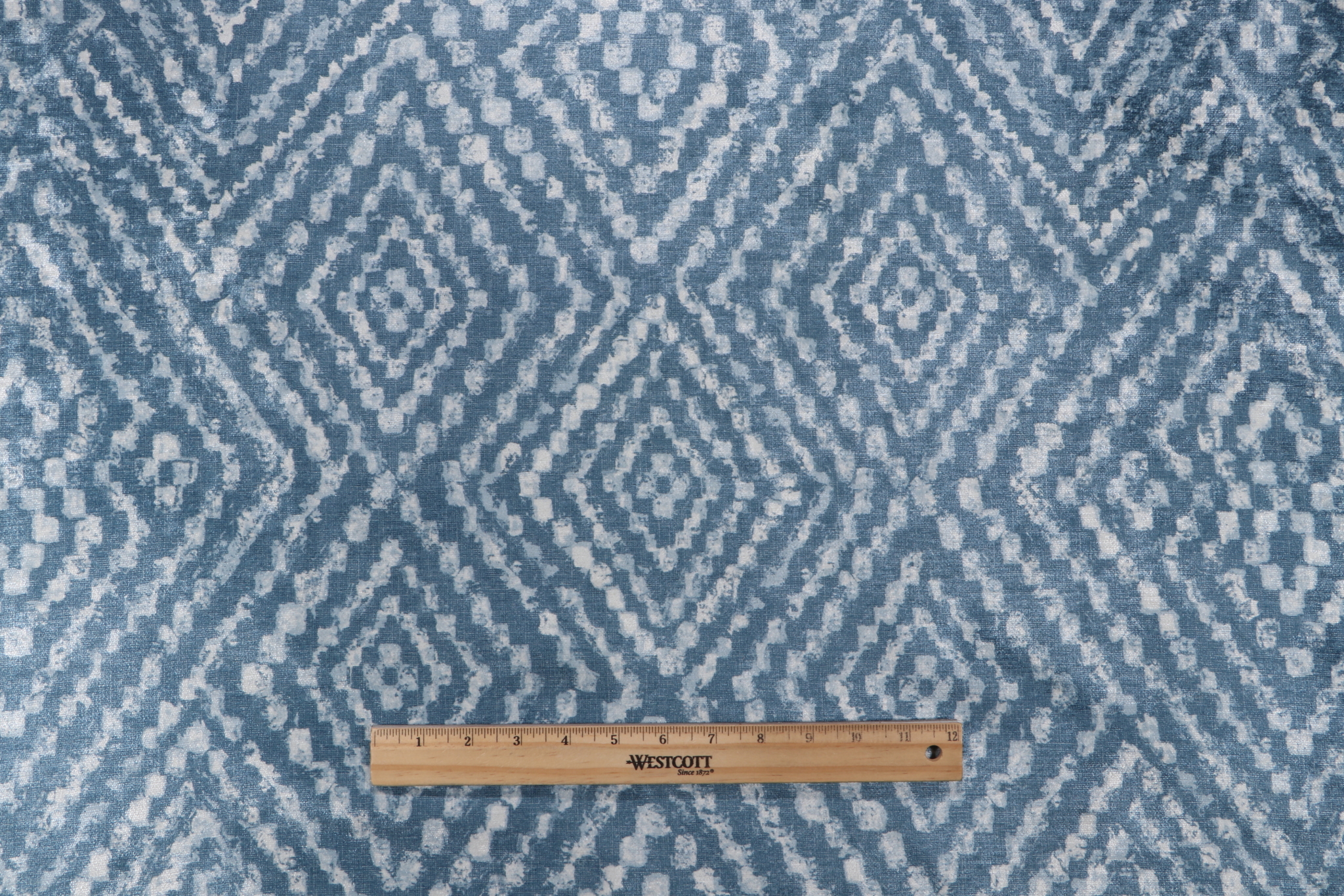 P Kaufmann Diamond Printed Chenille Decorator Fabric in Denim Blue is a remnant, which is sold as a whole piece.
