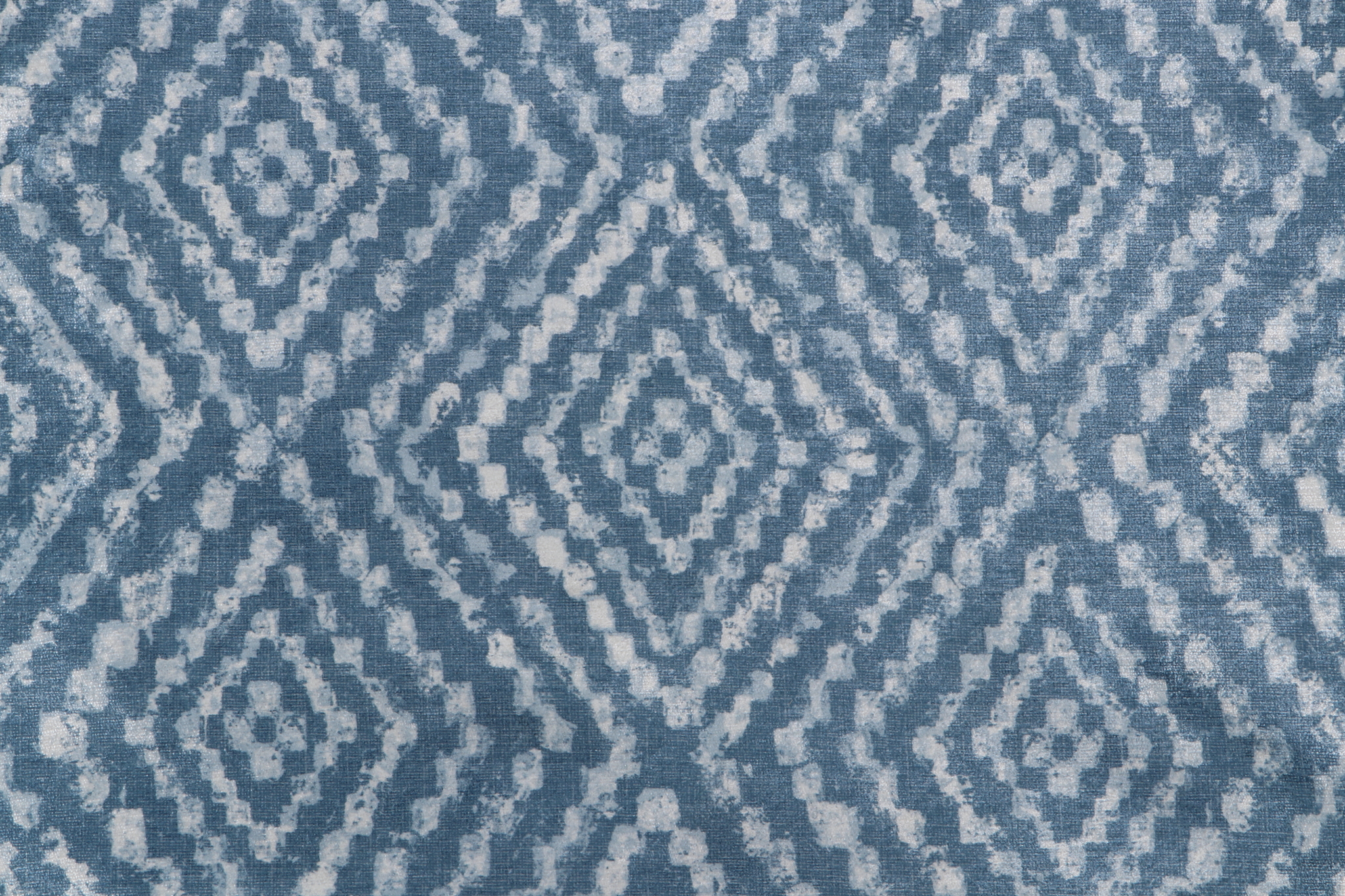 P Kaufmann Diamond Printed Chenille Decorator Fabric in Denim Blue is a remnant. Fabric remnants refer to leftover pieces of fabric from production runs at manufacturing sites or pieces that remain from by the yard stock. The lengths of these remnants can vary from a few inches to several yards and are typically sold at a reduced price, since they represent remaining inventory.