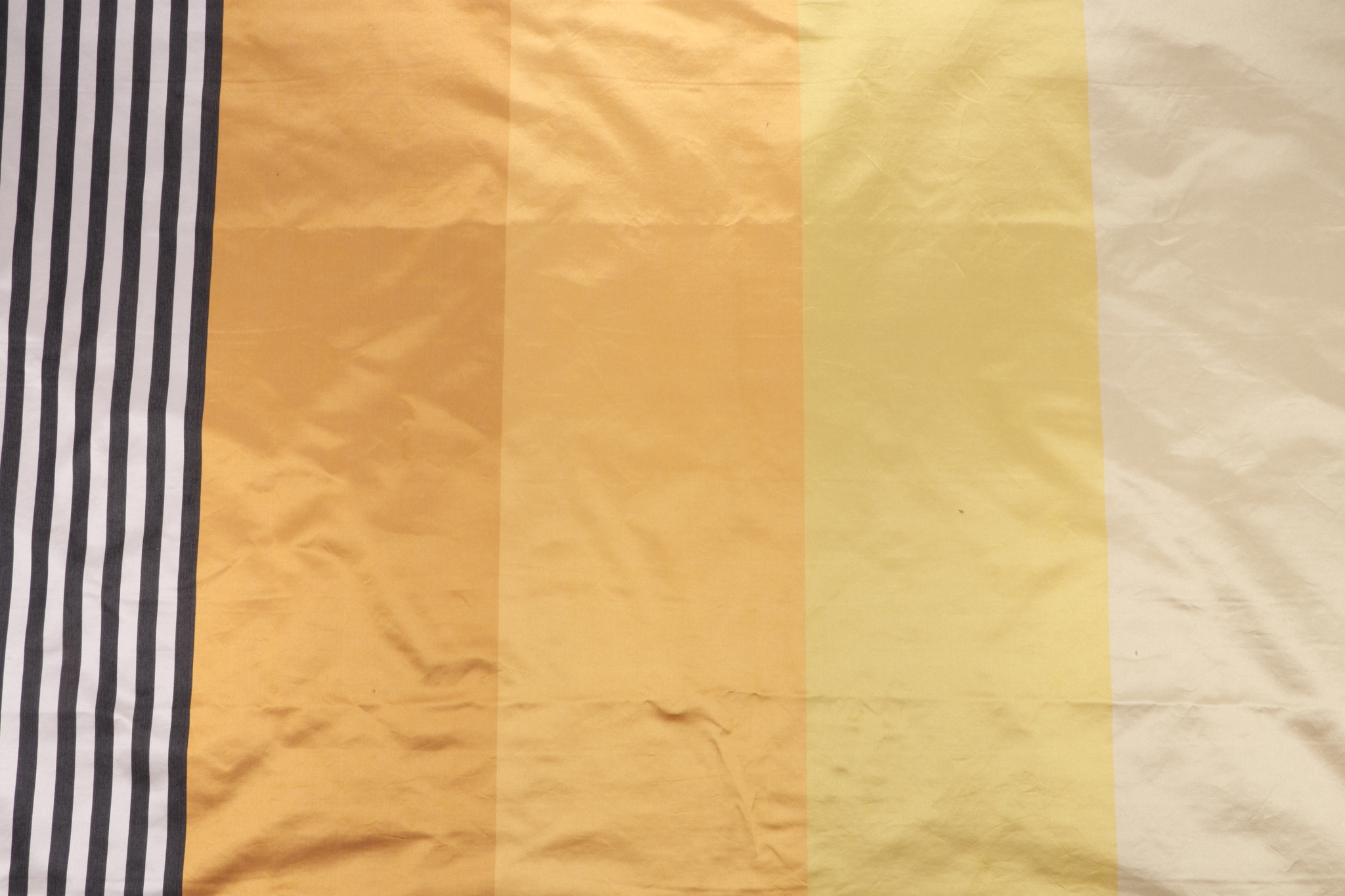 Scalamandre Candy Woven Decorator Fabric in Soleil is a remnant. Fabric remnants refer to leftover pieces of fabric from production runs at manufacturing sites or pieces that remain from by the yard stock. The lengths of these remnants can vary from a few inches to several yards and are typically sold at a reduced price, since they represent remaining inventory.