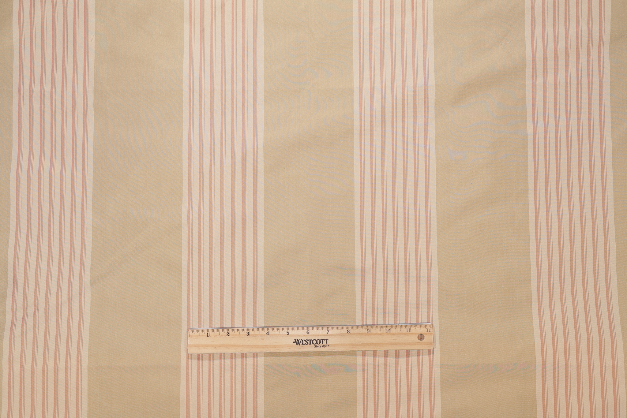 Scalamandre Carmella Stripe Silk Decorator Fabric in Natural is a remnant, which is sold as a whole piece.