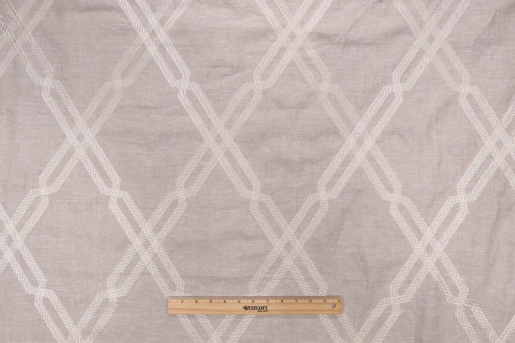 Thibaut Fusion Trellis W736148 Embroidered Linen Drapery Fabric in Natural is a remnant, which is sold as a whole piece.