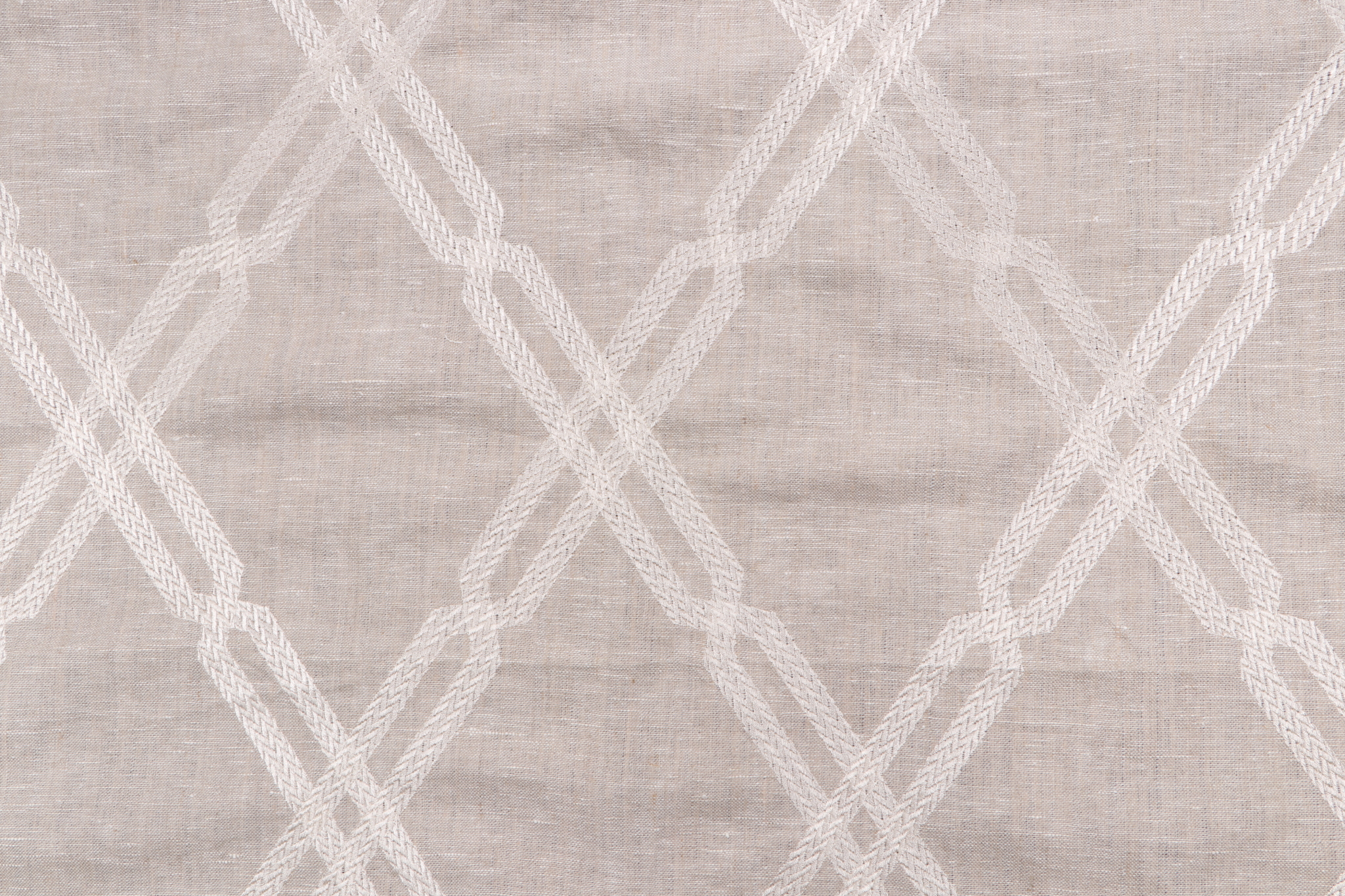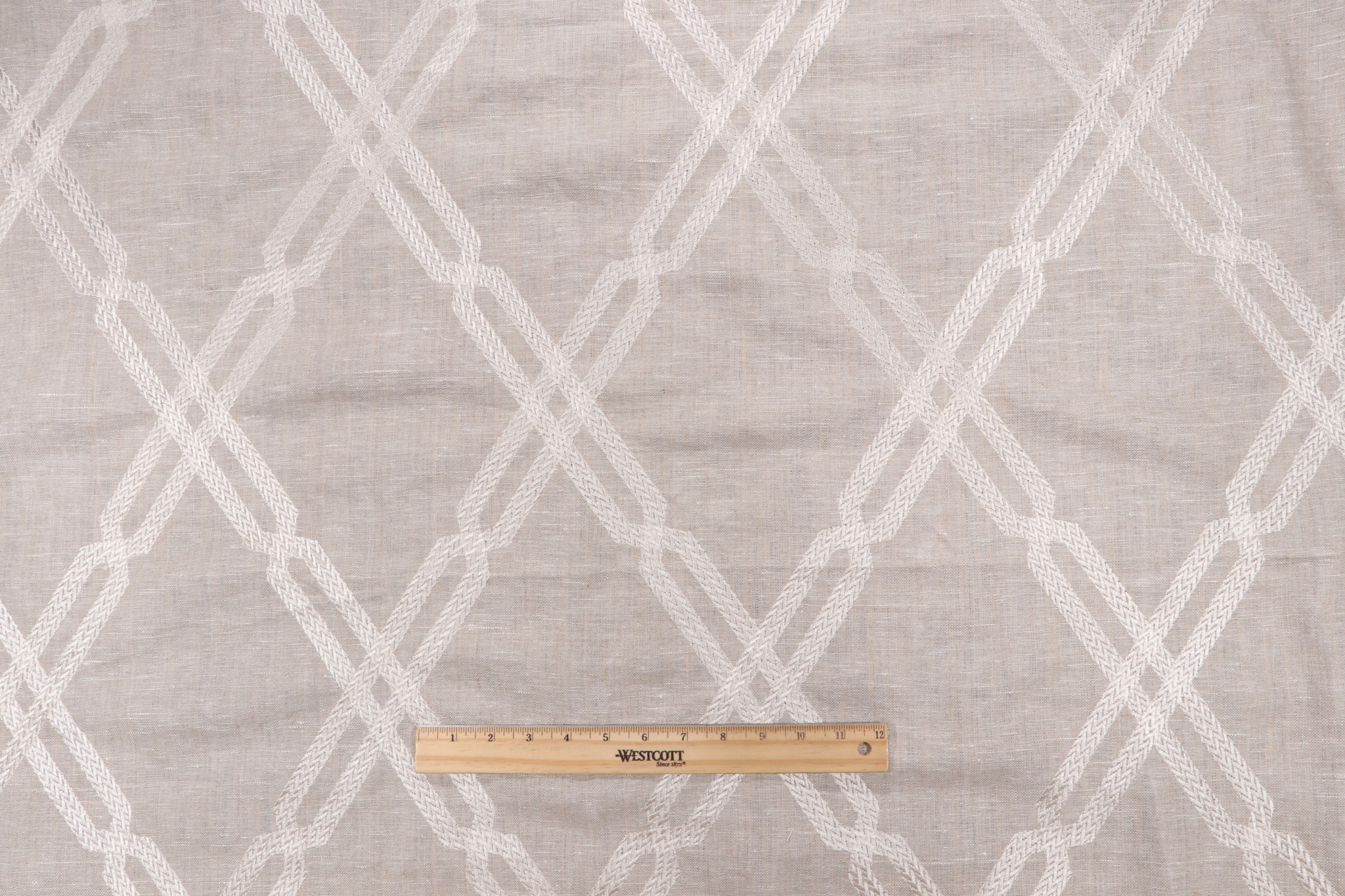 Thibaut Fusion Trellis W736148 Embroidered Linen Drapery Fabric in Natural is a remnant, which is sold as a whole piece.