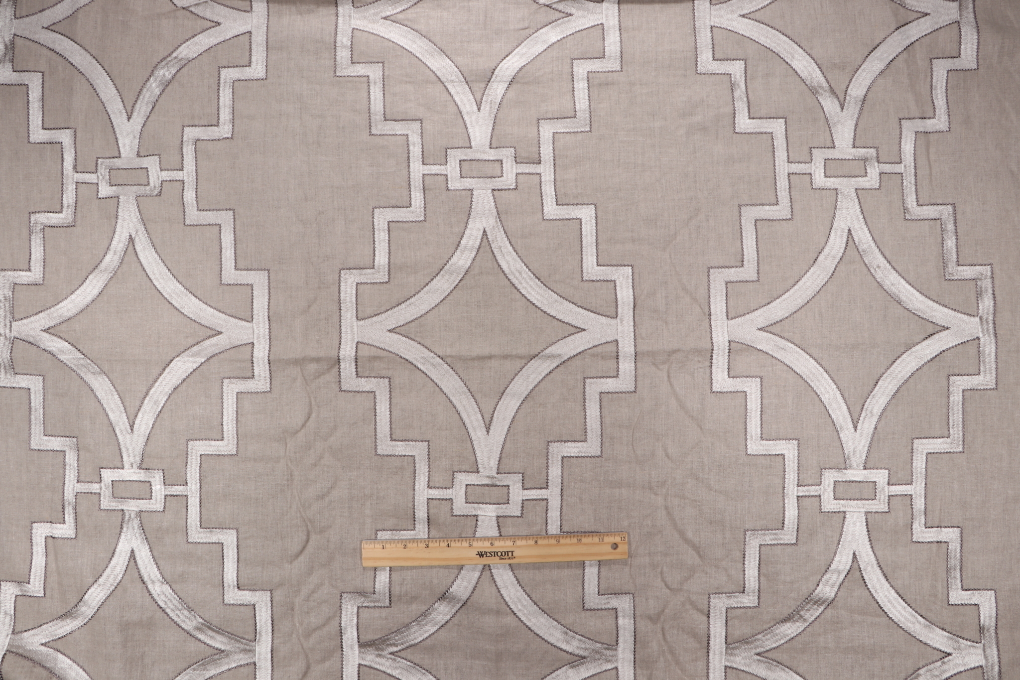 Anna French Songyue W736147 Embroidered Drapery Fabric in Natural for Thibaut is a remnant. Fabric remnants refer to leftover pieces of fabric from production runs at manufacturing sites or pieces that remain from by the yard stock. The lengths of these remnants can vary from a few inches to several yards and are typically sold at a reduced price, since they represent remaining inventory.
