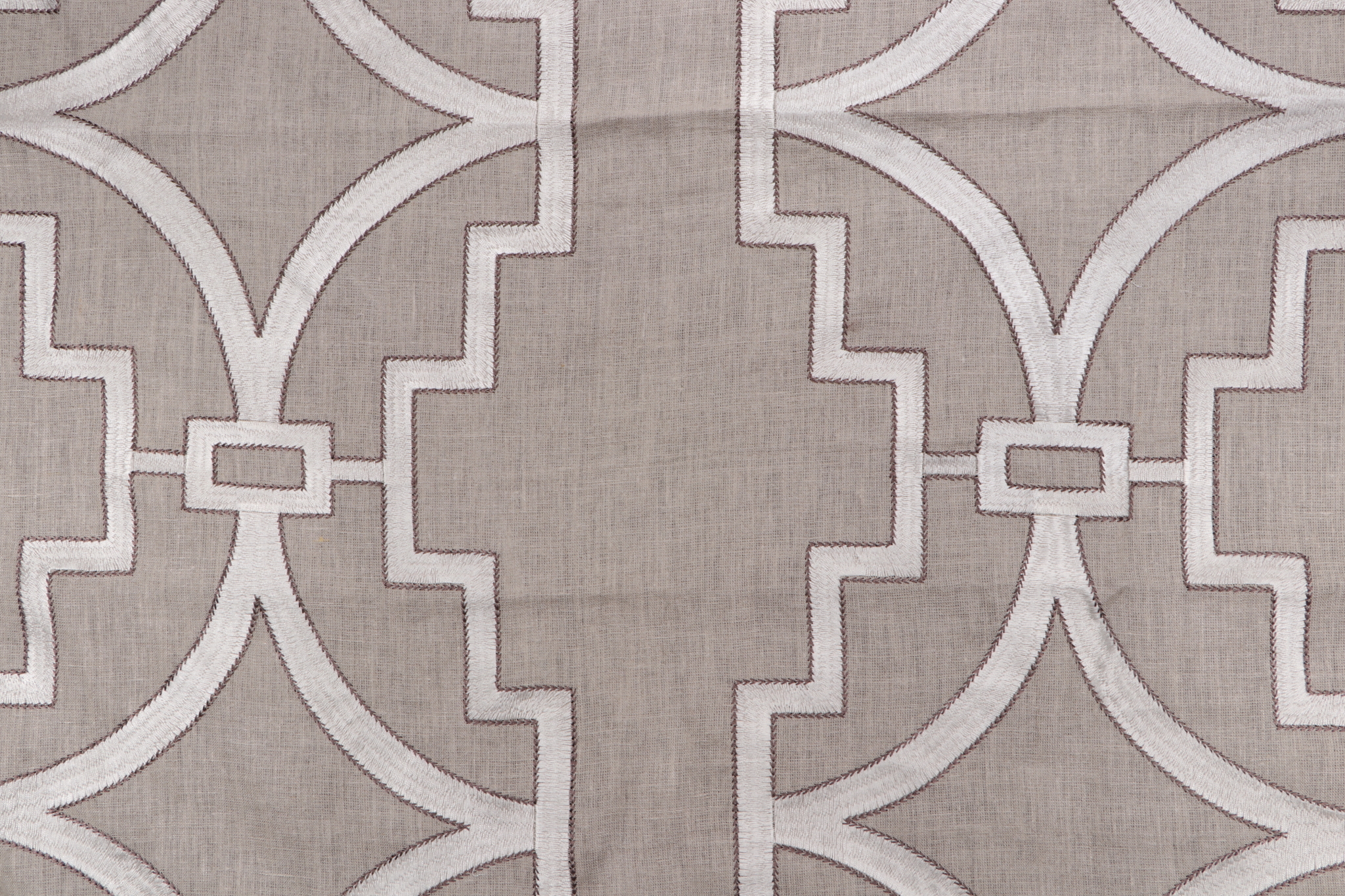 Anna French Songyue W736147 Embroidered Drapery Fabric in Natural for Thibaut is a remnant. Fabric remnants refer to leftover pieces of fabric from production runs at manufacturing sites or pieces that remain from by the yard stock. The lengths of these remnants can vary from a few inches to several yards and are typically sold at a reduced price, since they represent remaining inventory.
