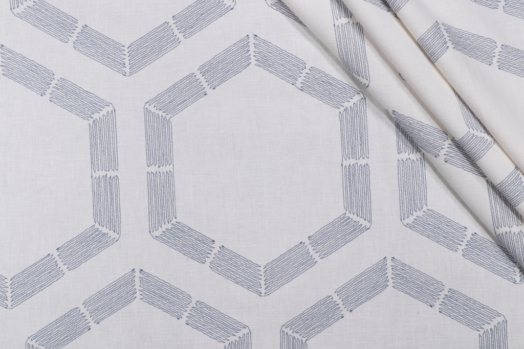 Please allow 2-3 business days for your Valiant Fabrics Elixir Embroidered Drapery Fabric in Nautic sample to ship via USPS Priority mail.