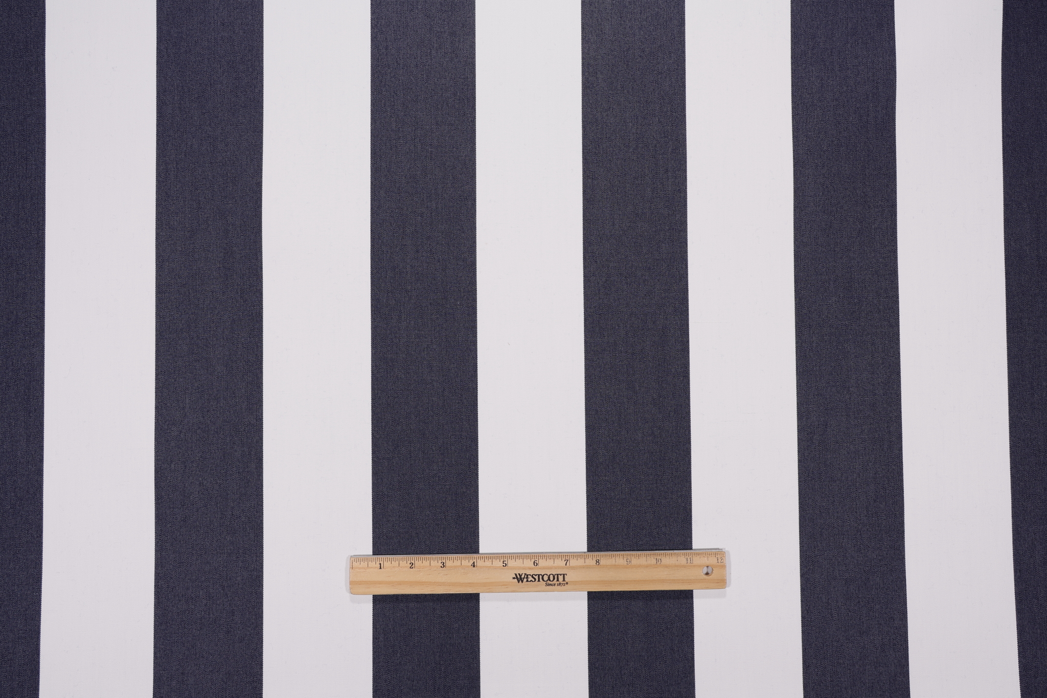 If you order a sample of Sunbrella Stripe Woven Solution Dyed Acrylic Outdoor Fabric in Navy the size of the swatch you receive will be approximately 4" x 6". This is enough fabric to verify color and texture, but may not be large enough to capture an entire pattern.