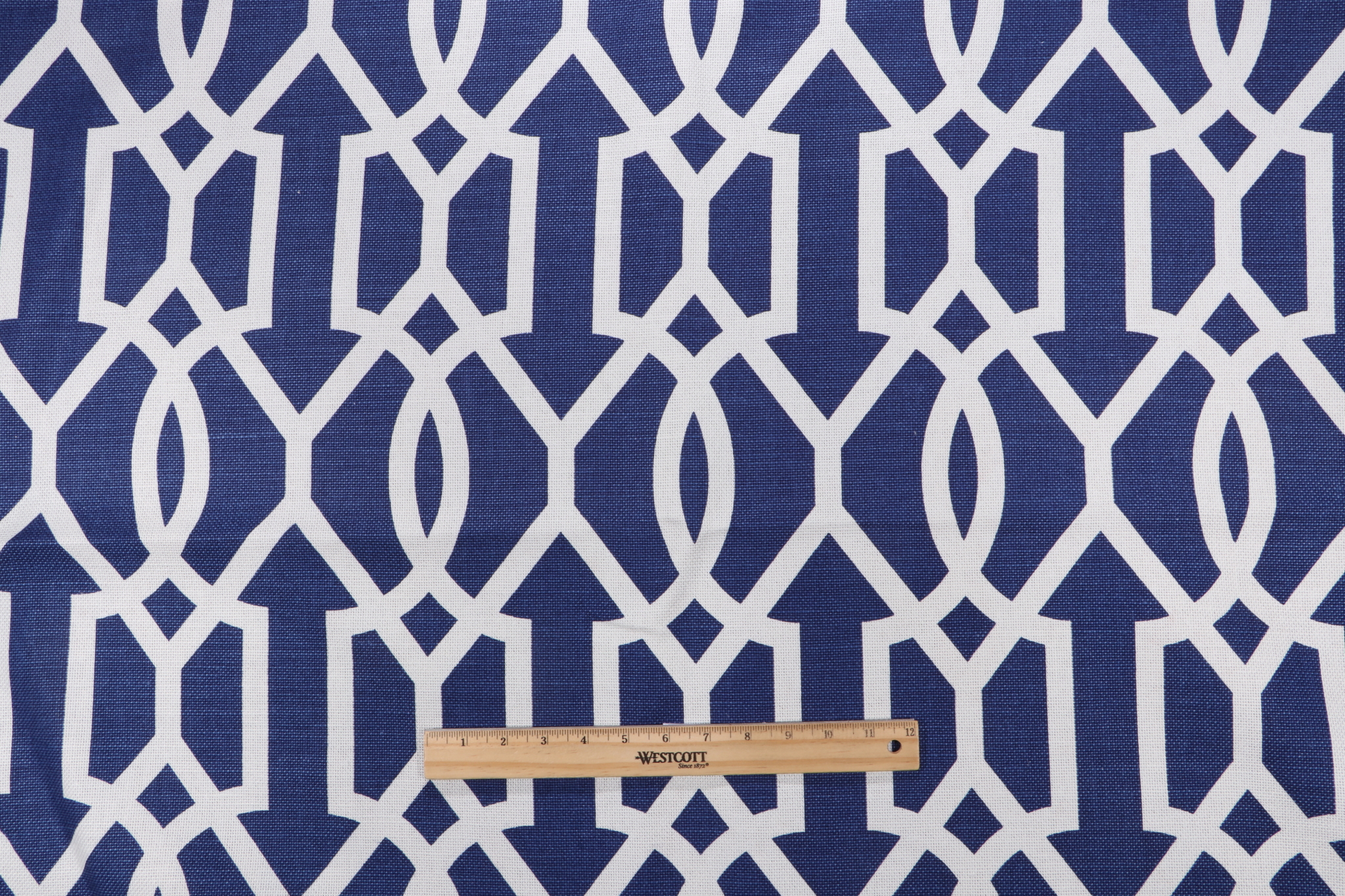 1.5 Yards Thibaut Downing Gate F916047 Printed Linen Blend Drapery Fabric in Navy Details