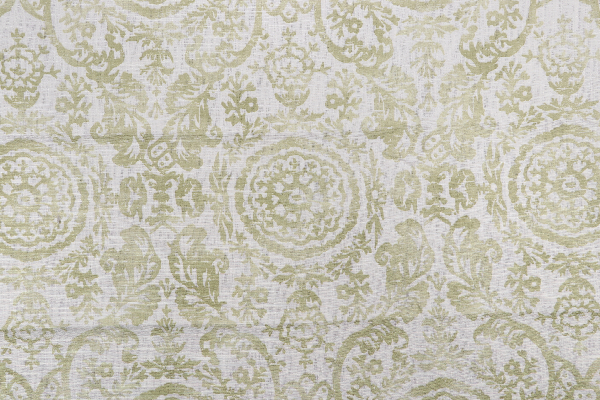 Anna French Sansome F94154 Printed Linen Blend Drapery Fabric in Lime for Thibaut is a remnant. Fabric remnants refer to leftover pieces of fabric from production runs at manufacturing sites or pieces that remain from by the yard stock. The lengths of these remnants can vary from a few inches to several yards and are typically sold at a reduced price, since they represent remaining inventory.