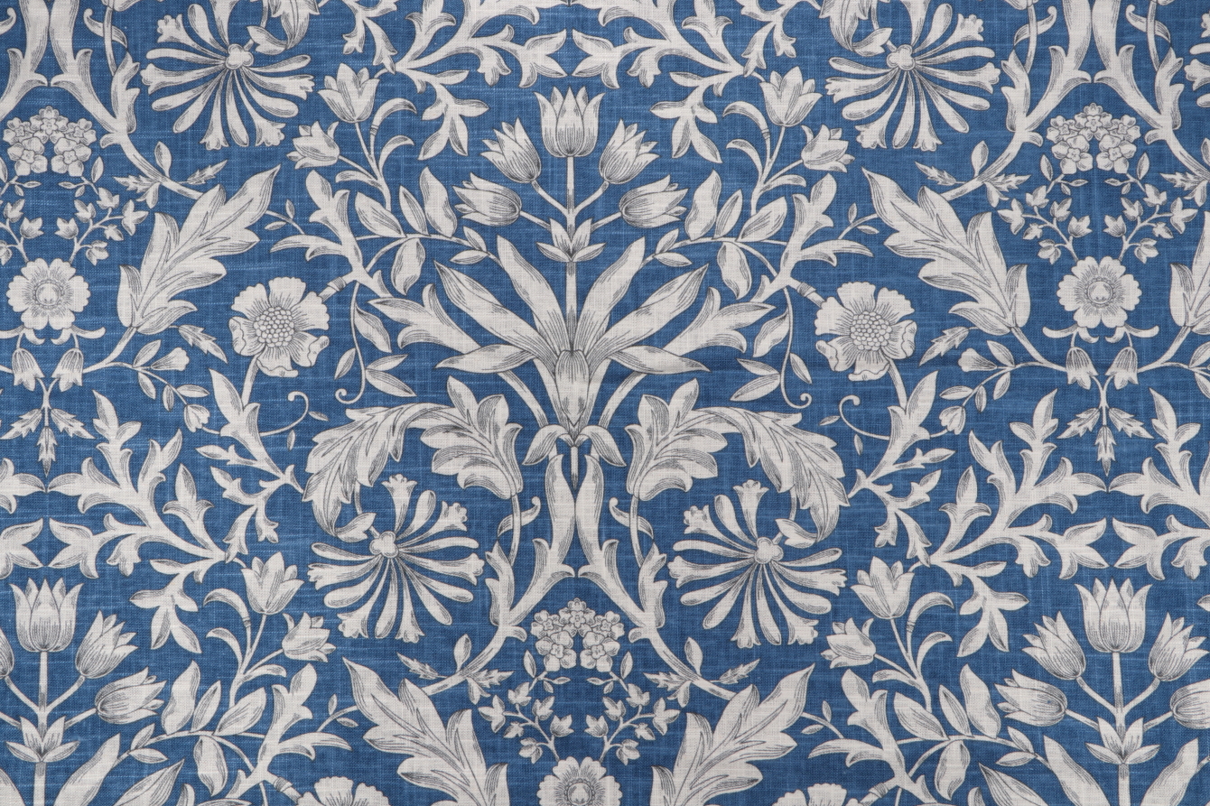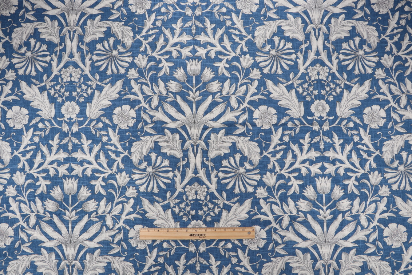 Covington Flourish Printed Linen Blend Drapery Fabric in 56-Mariner Details