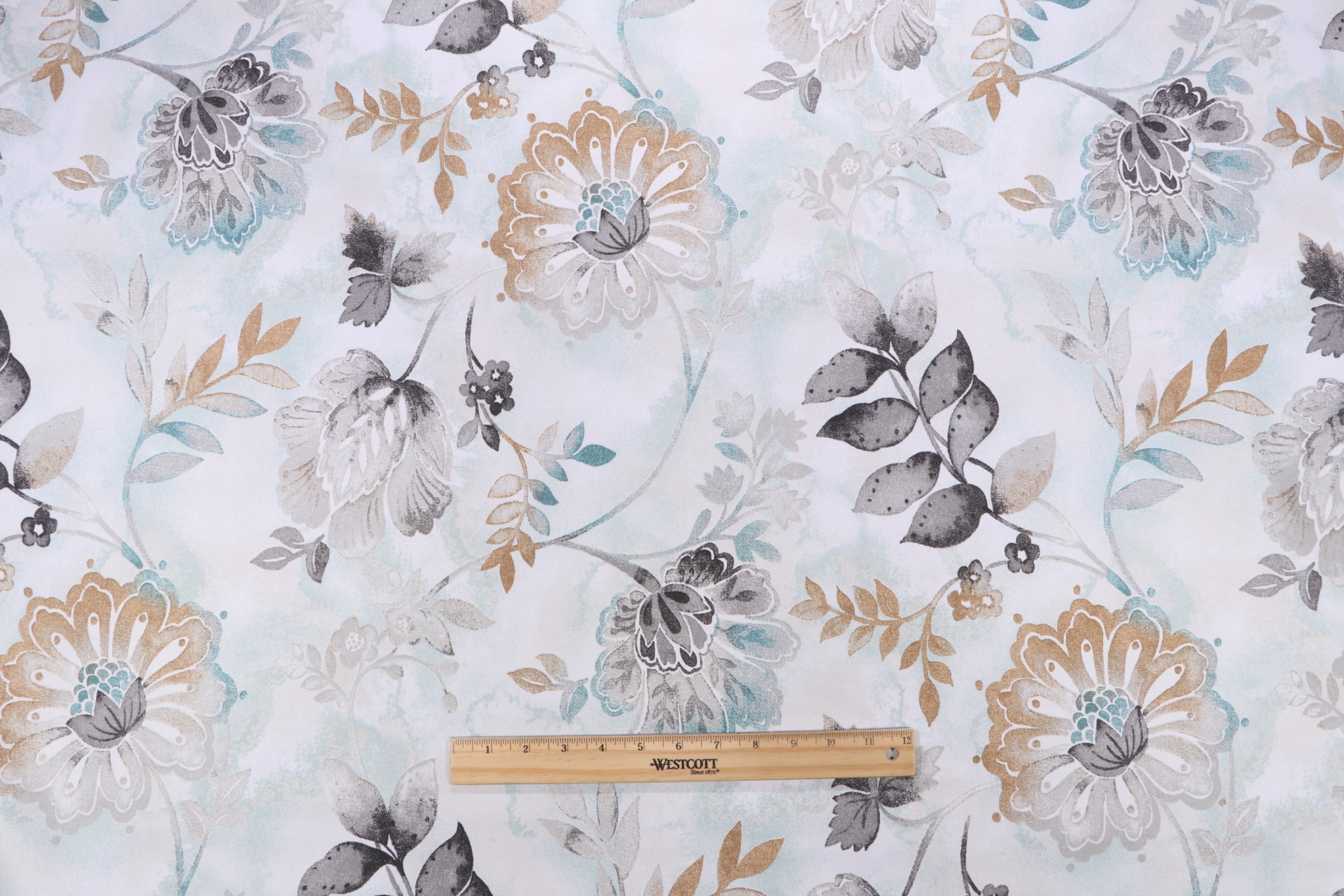 Kelly Ripa Home Light-Hearted Printed Cotton Drapery Fabric in Spa Details
