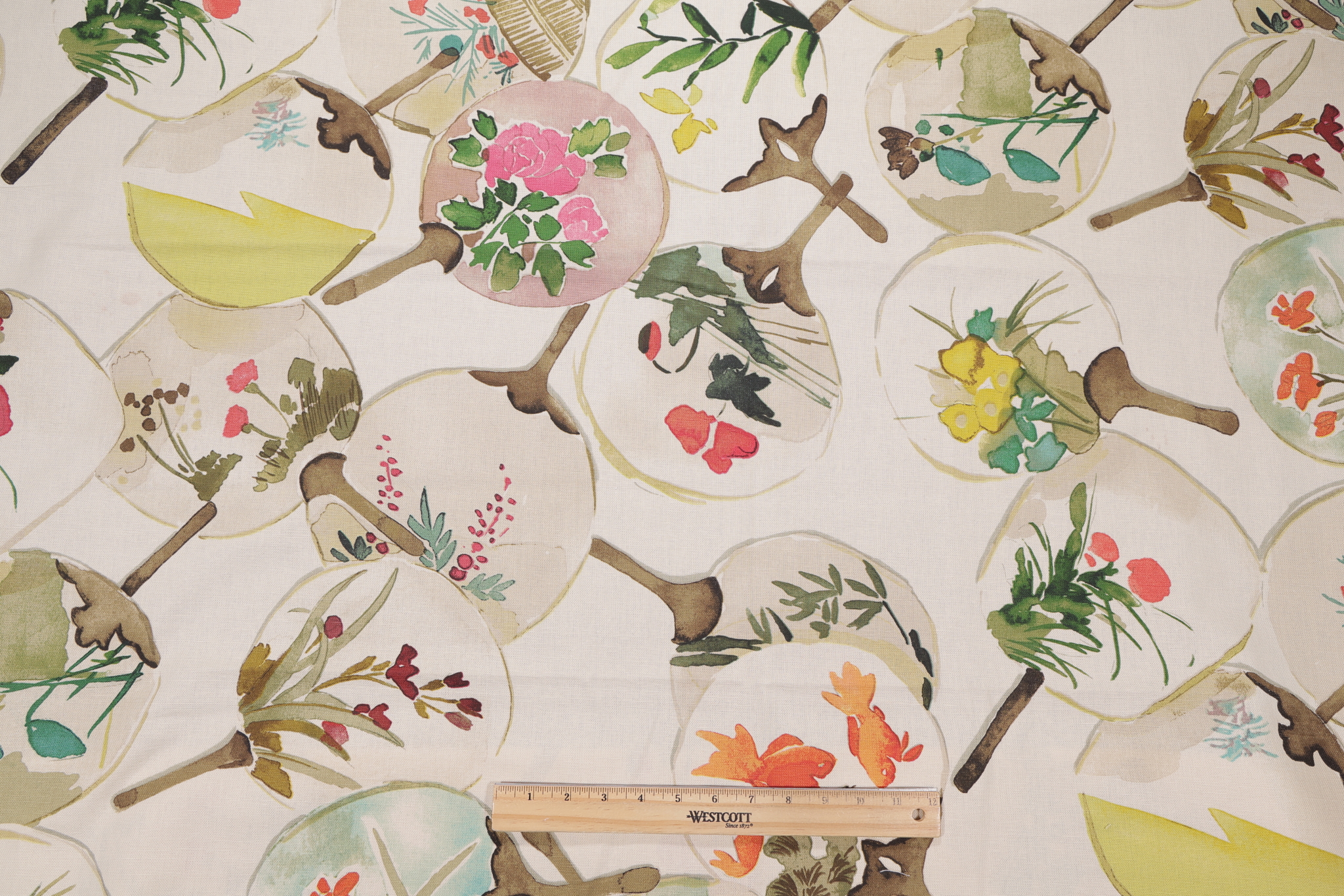Mia Printed Drapery Fabric in Multi is a remnant, which is sold as a whole piece.