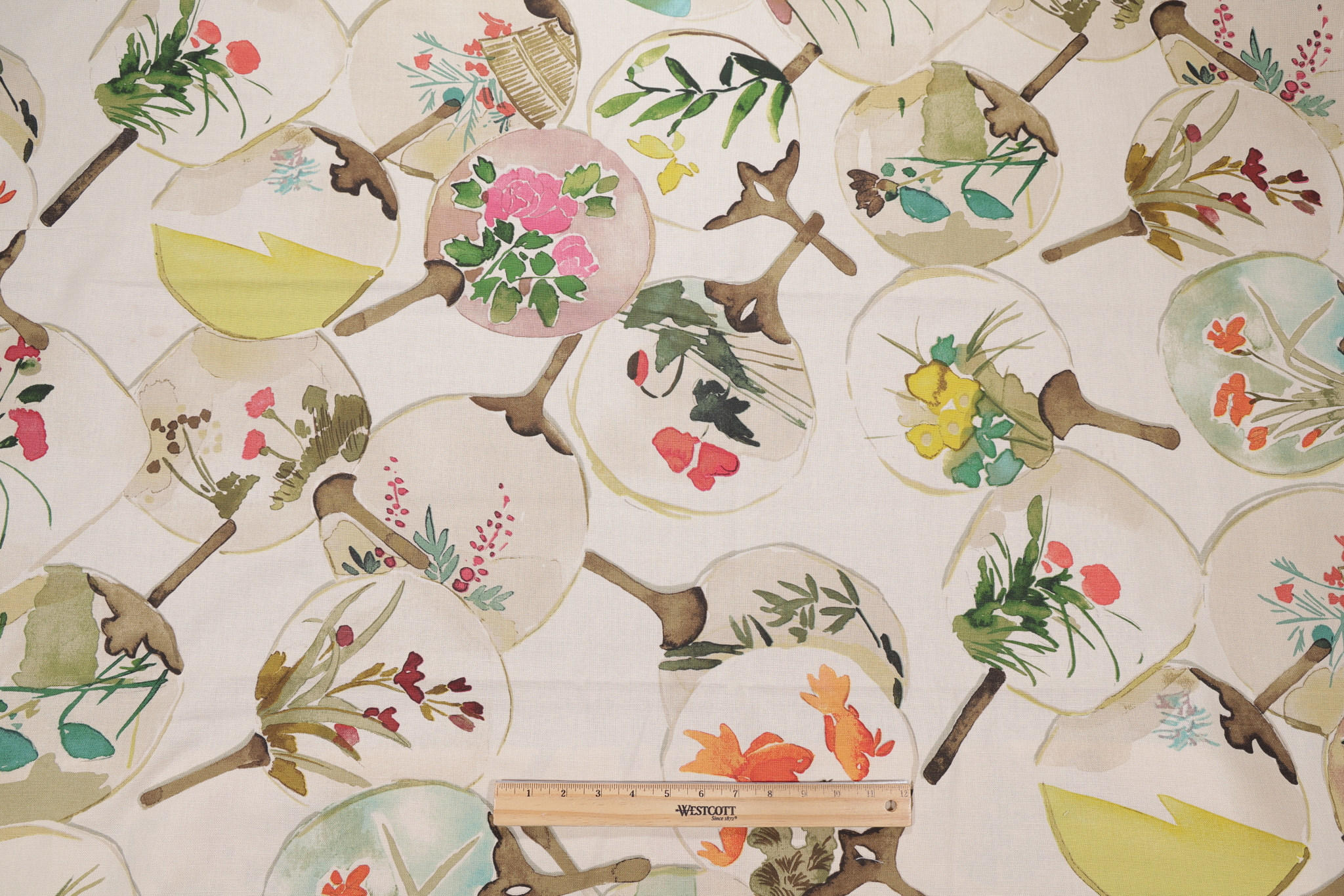 Mia Printed Drapery Fabric in Multi is a remnant, which is sold as a whole piece.