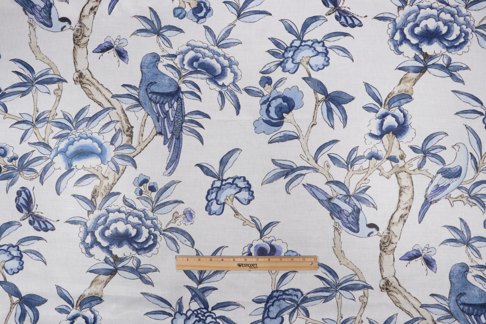2.5 Yards Thibaut Giselle F914224 Printed Linen Blend Drapery Fabric in Blue and White Details