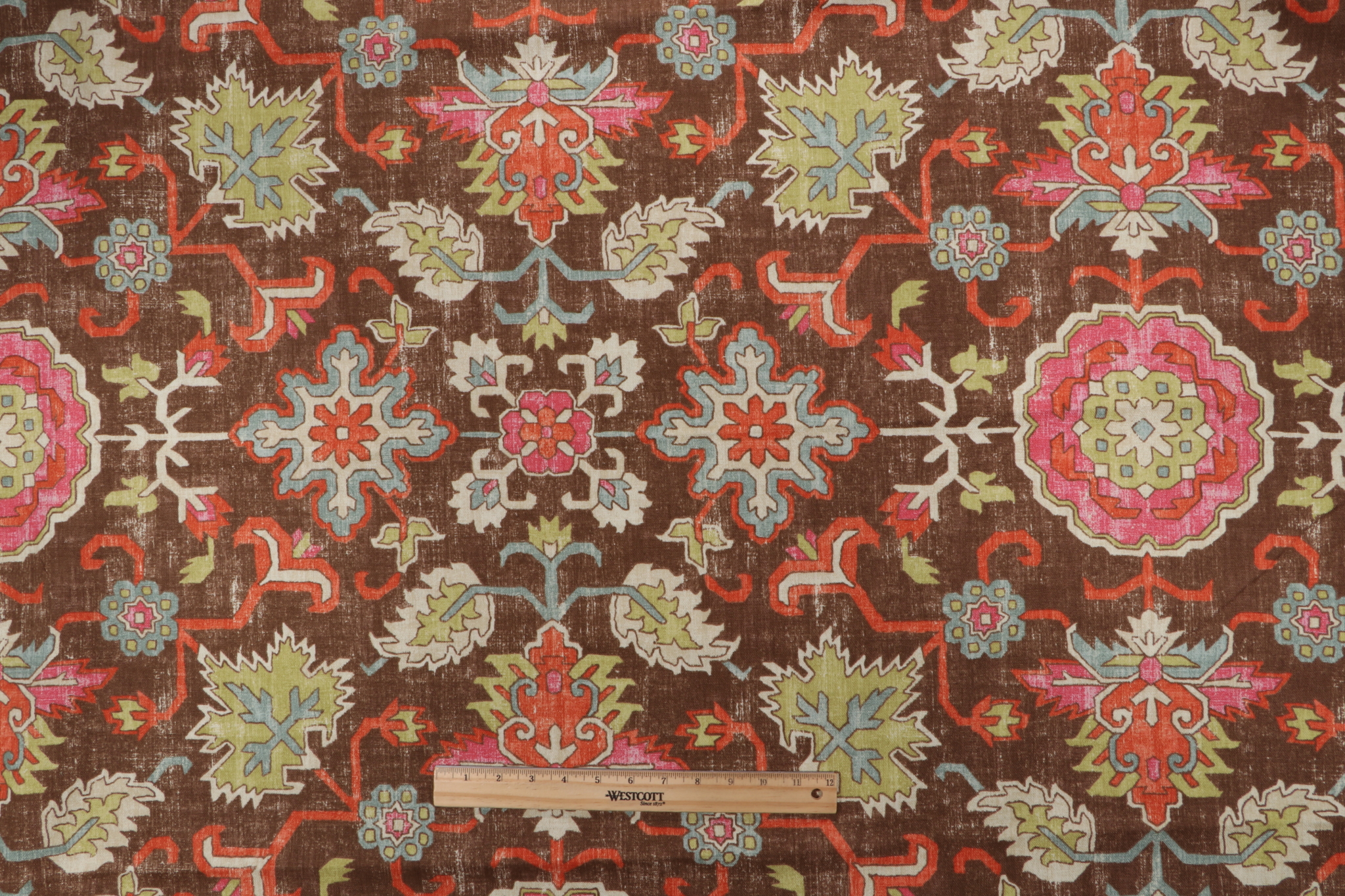 1.25 Yards Thibaut Mahal F964133 Printed Linen Blend Drapery Fabric in Chocolate Details