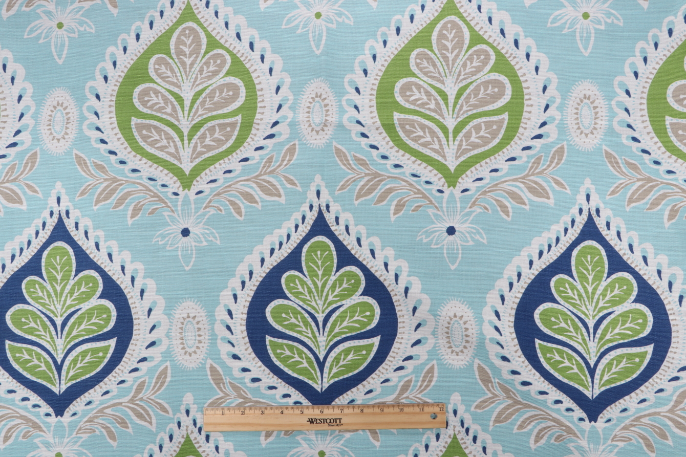 Thibaut Midland F924316 Printed Linen Blend Drapery Fabric in Blue and Green Details