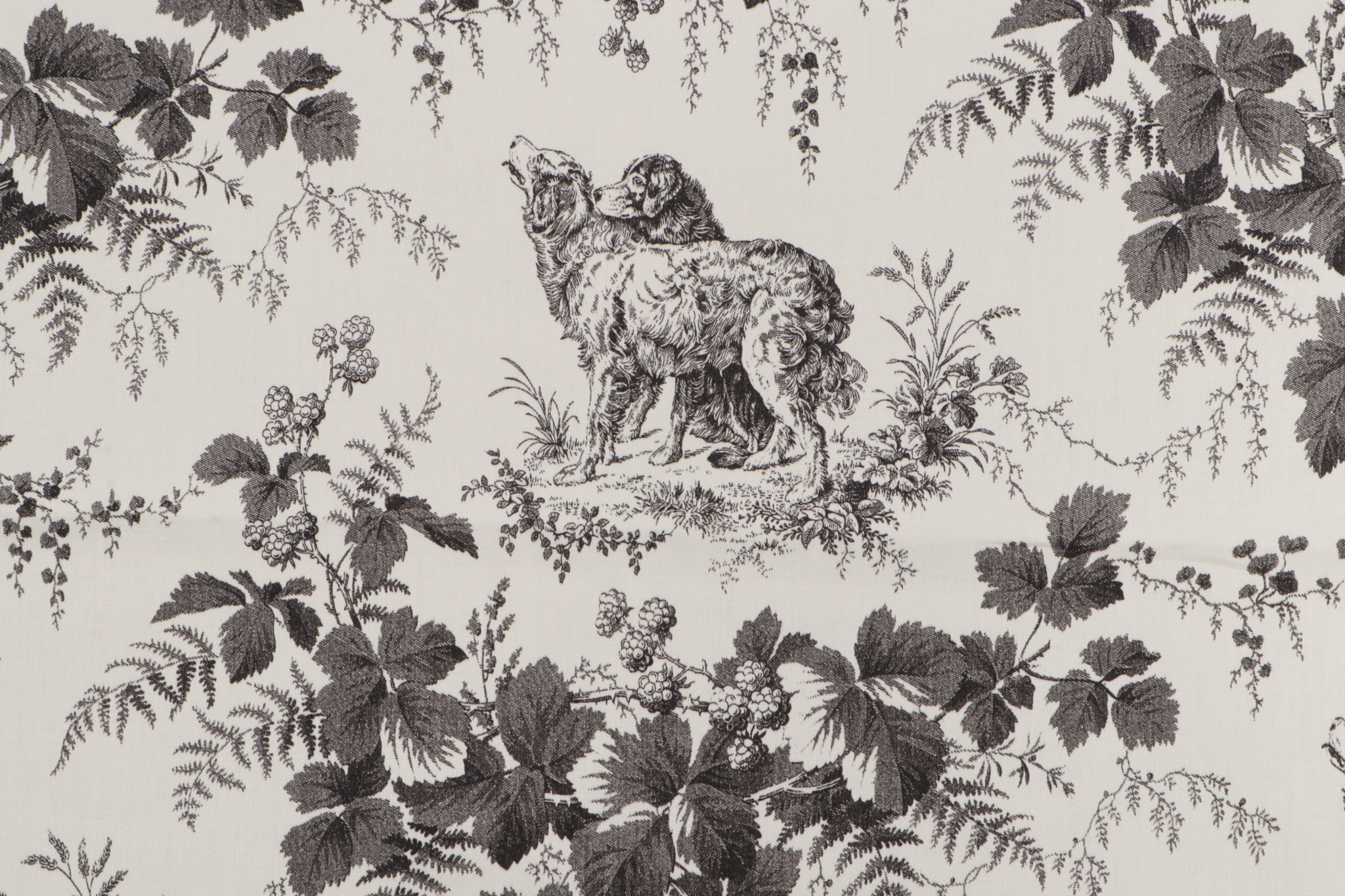 1.13 Yards Thibaut Pedigree F99720 Printed Cotton Drapery Fabric in Black on Cream Details
