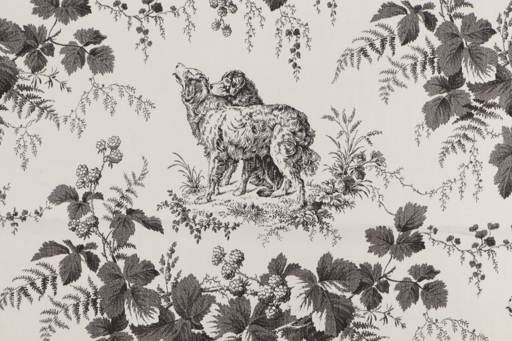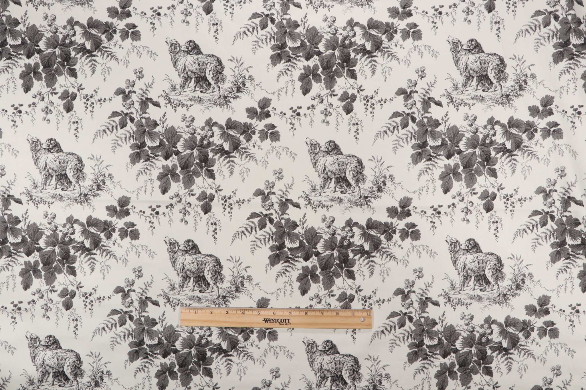 1.13 Yards Thibaut Pedigree F99720 Printed Cotton Drapery Fabric in Black on Cream Details