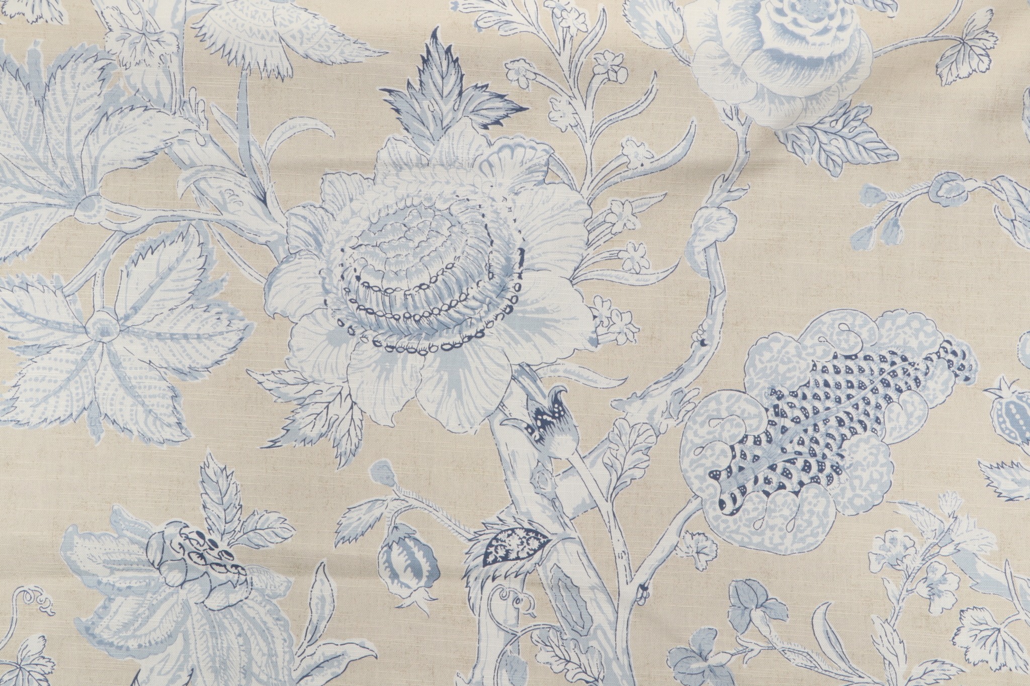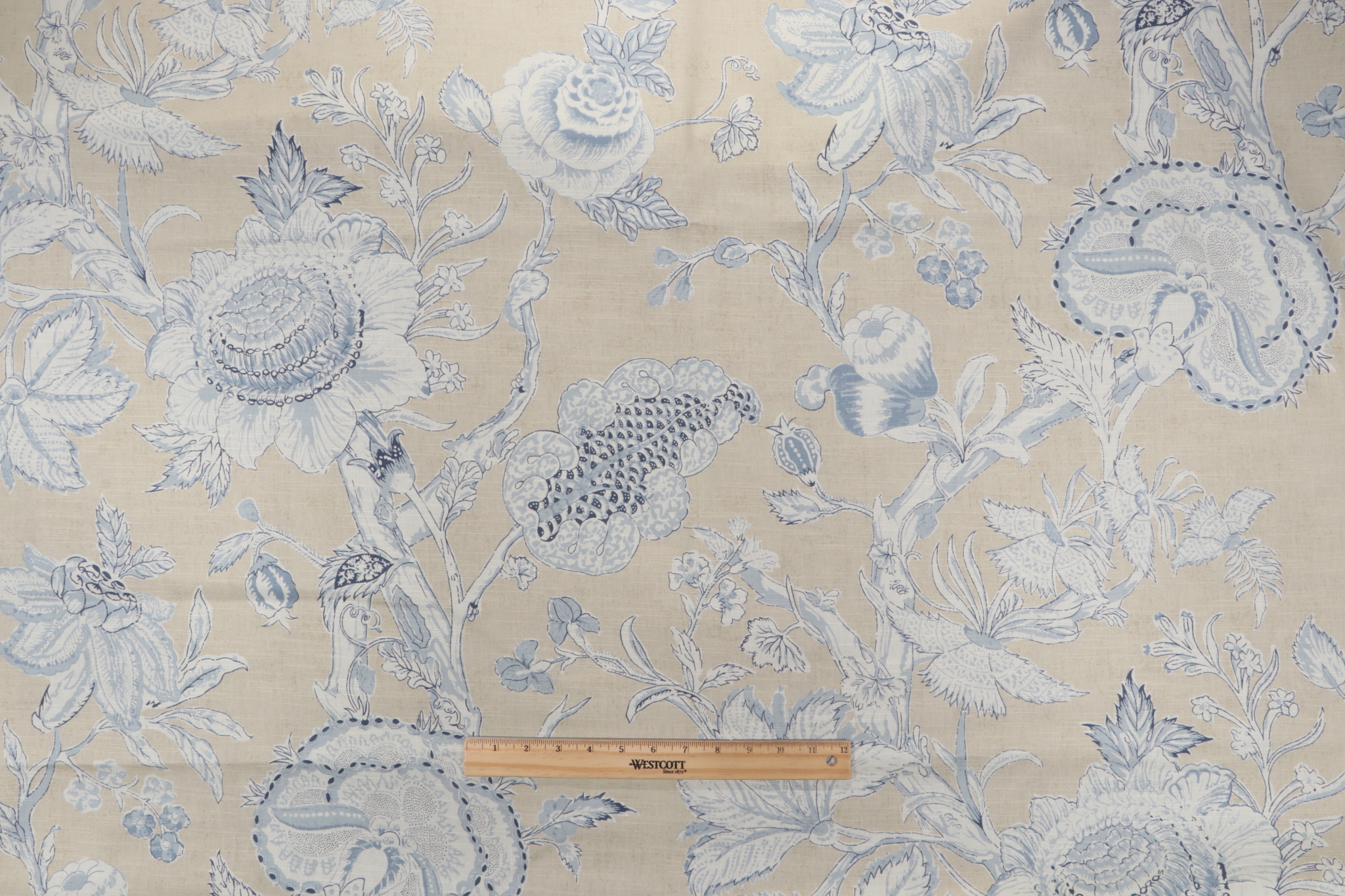 1.75 Yards Thibaut Rittenhouse F94146 Printed Cotton Blend Drapery Fabric in Blue and Tan Details