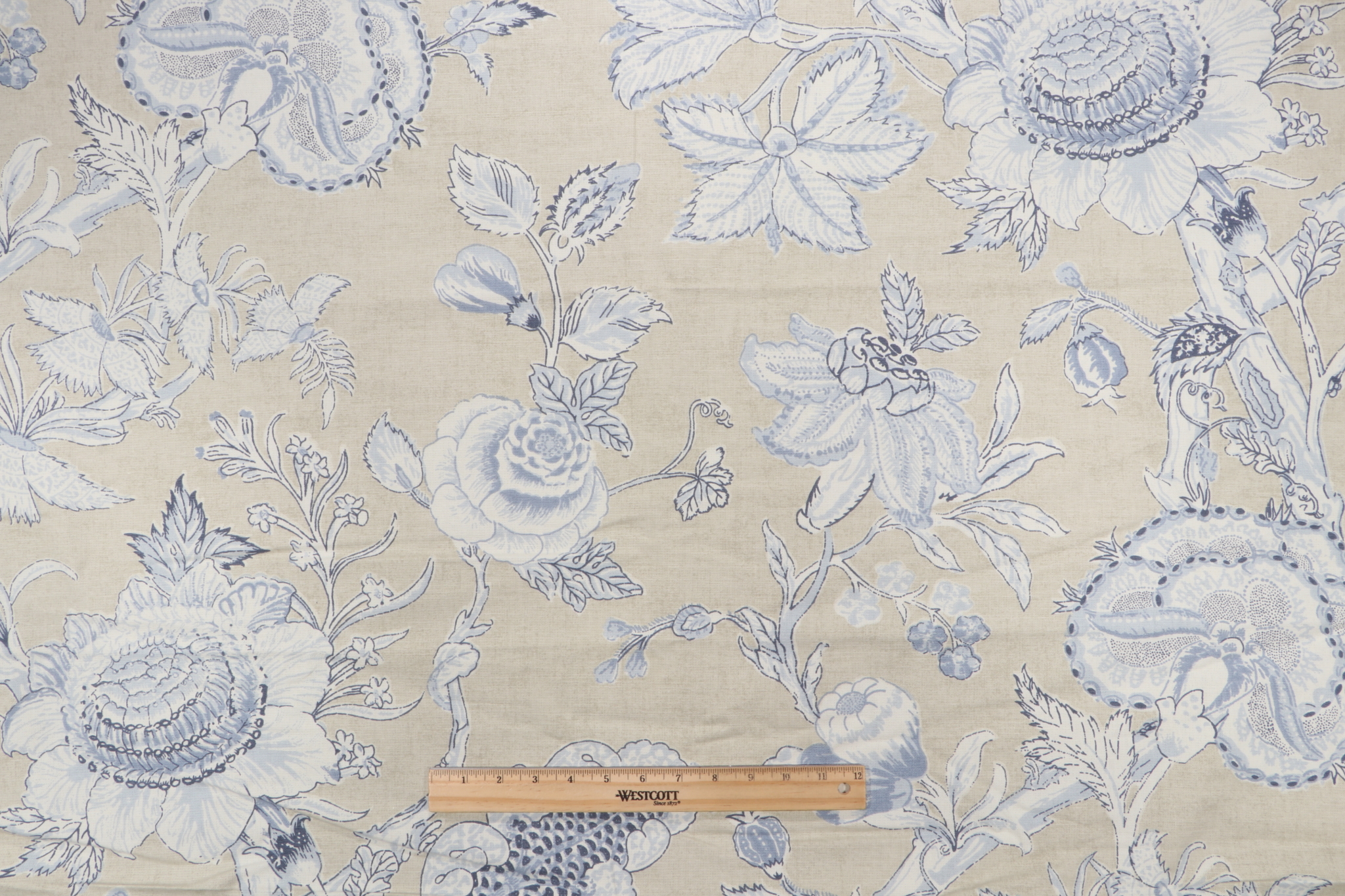 1 Yard Thibaut Rittenhouse F94146 Printed Cotton Blend Drapery Fabric in Blue and Tan Details
