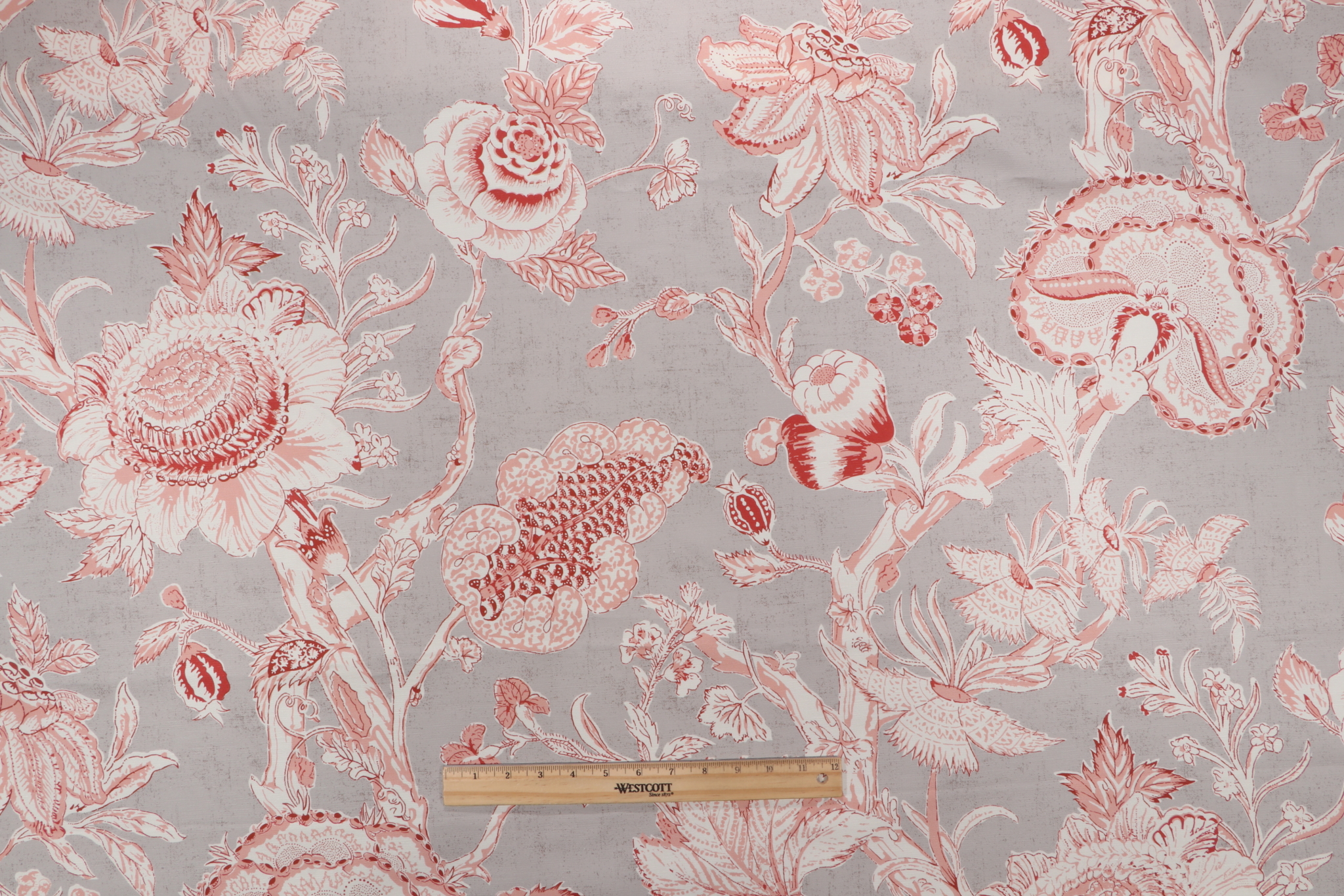 1.13 Yards Thibaut Rittenhouse F94147 Printed Cotton Drapery Fabric in Red on Linen Details