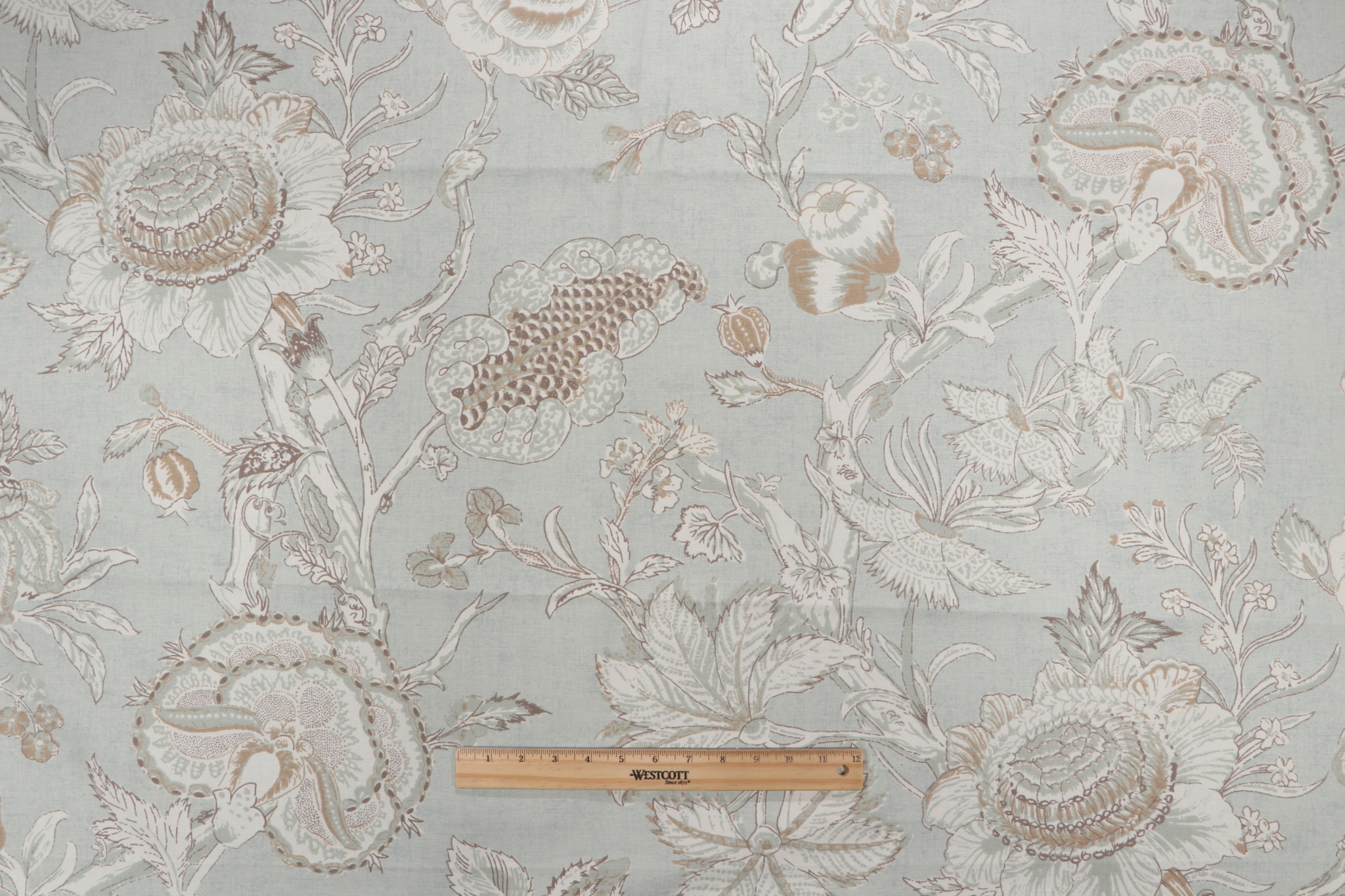 1.25 Yards Thibaut Rittenhouse F94149 Printed Cotton Blend Drapery Fabric in Sea Glass Details