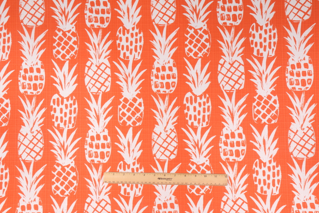 Premier Prints Pineapple - Luxe Printed Luxe Polyester Outdoor Fabric in Marmalade is a remnant. Fabric remnants refer to leftover pieces of fabric from production runs at manufacturing sites or pieces that remain from by the yard stock. The lengths of these remnants can vary from a few inches to several yards and are typically sold at a reduced price, since they represent remaining inventory.