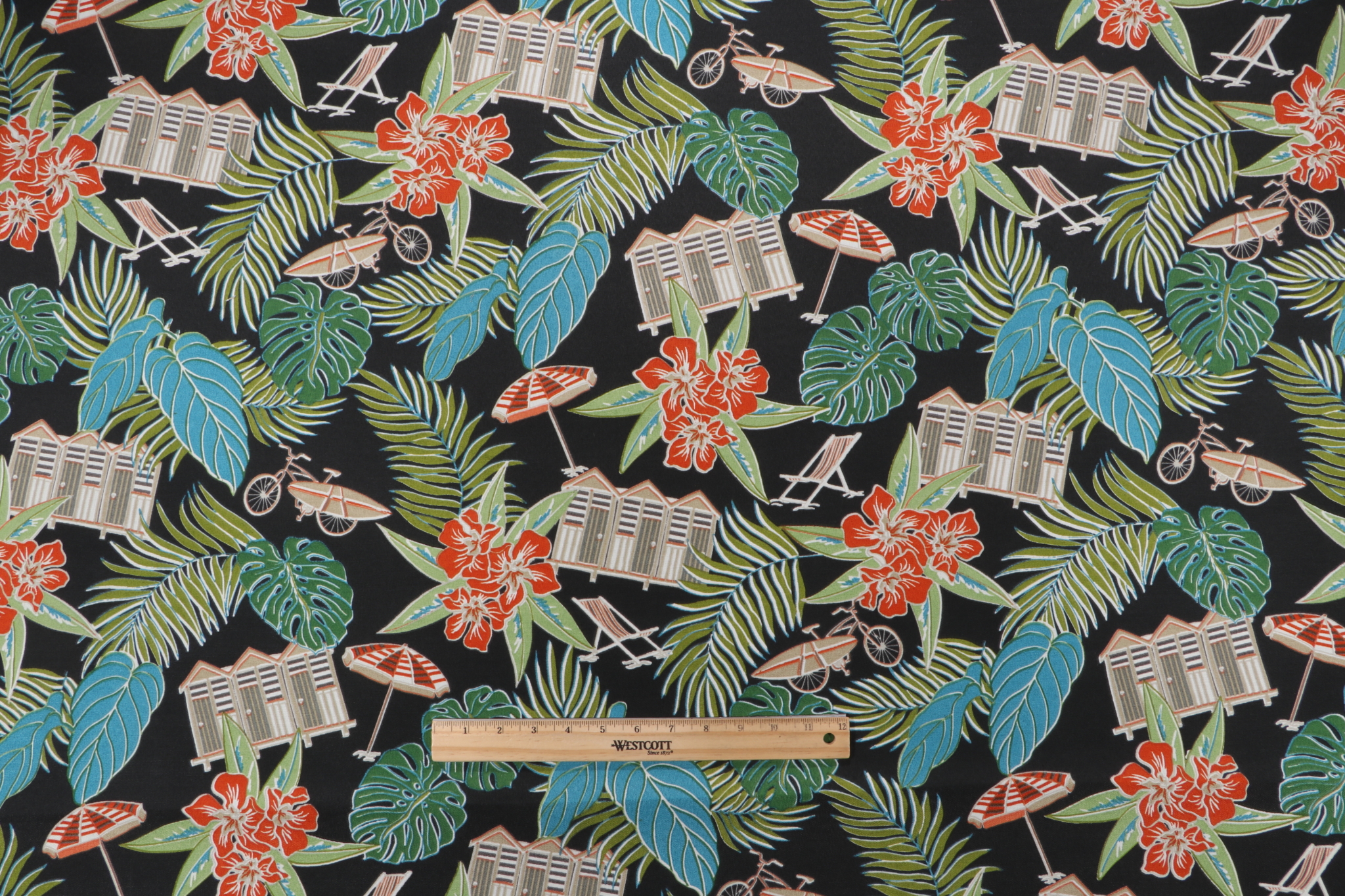 1 Yards Tommy Bahama Beach Scenes Printed Polyester Outdoor Fabric in Charcoal Details