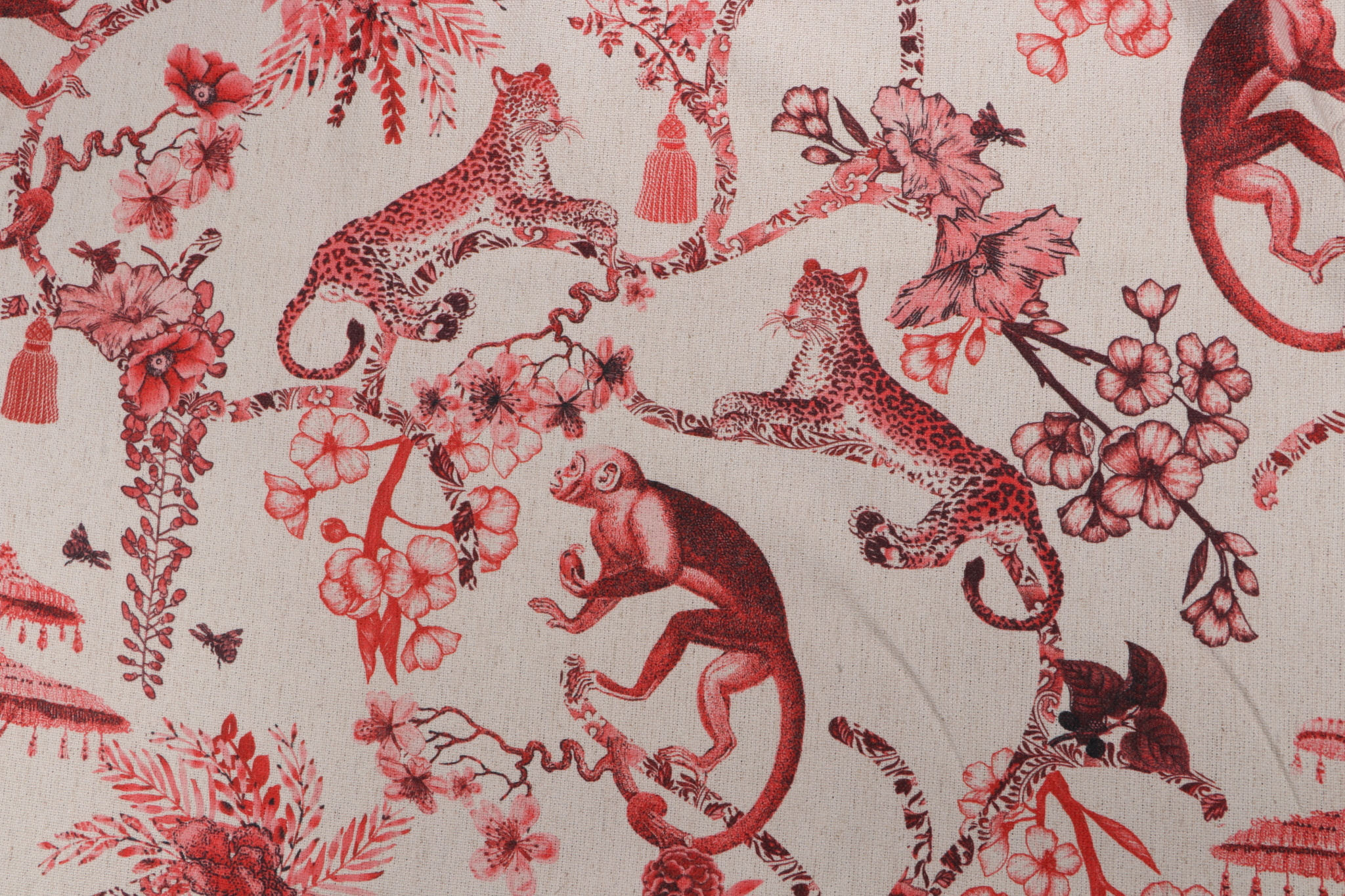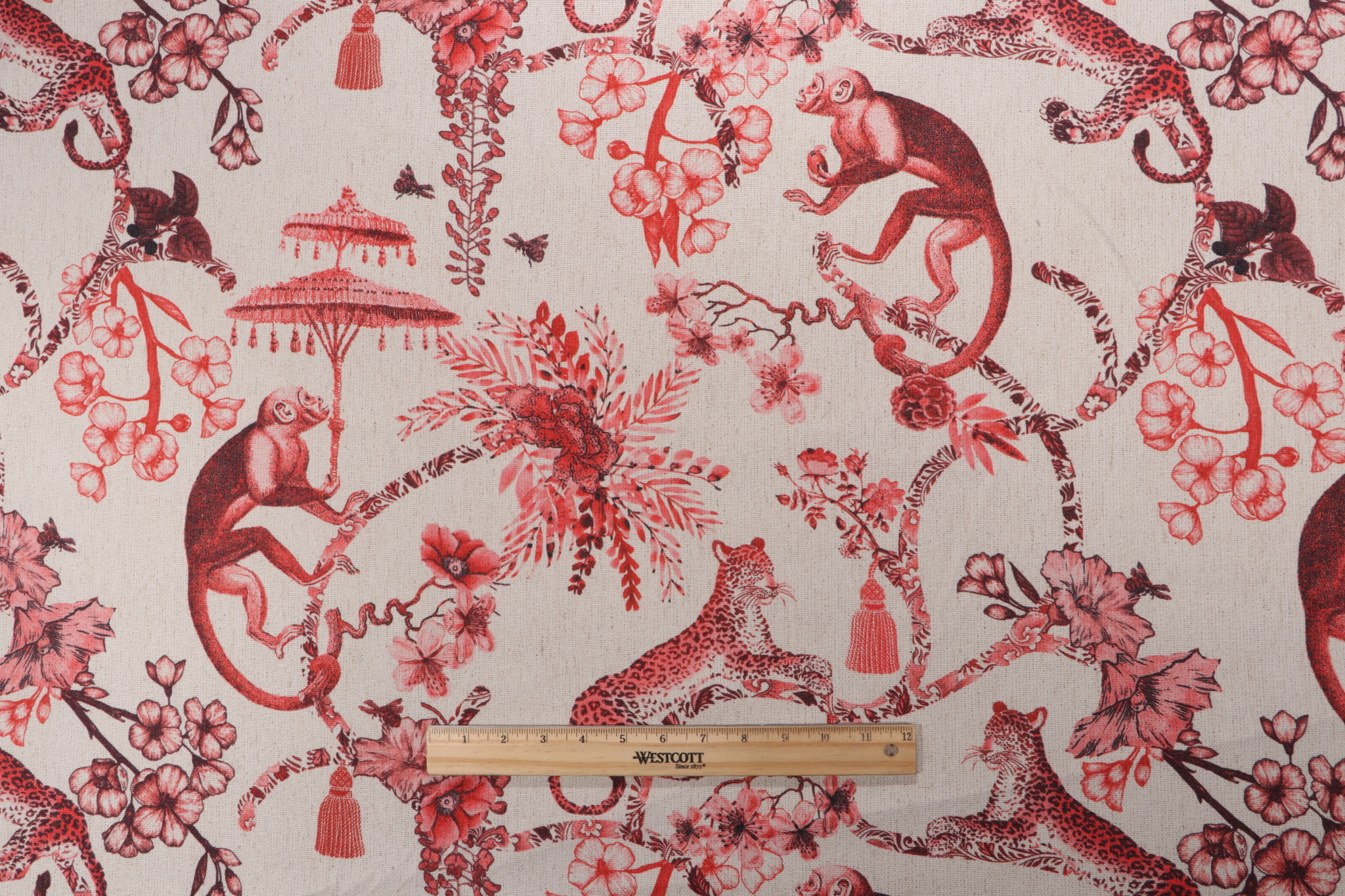 0.75 Yards Active Whimsy Printed Polyester Drapery Fabric in Ruby Details