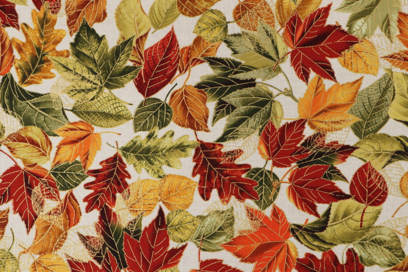 Fabrics of SoHo Fall Is In The Air - Metallic Fall Leaves Printed Cotton Craft Fabric in Cream for Timeless Treasures is a remnant, which is sold as a whole piece.