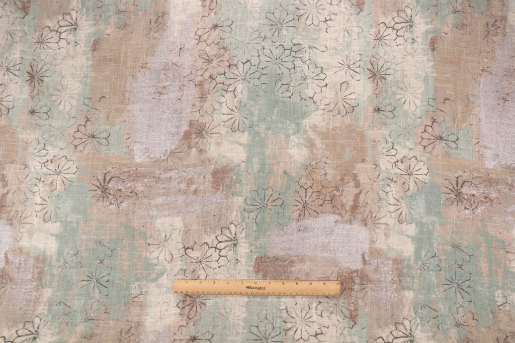 1.38 Yards Faded Floral Printed Linen Blend Drapery Fabric in Spa Details