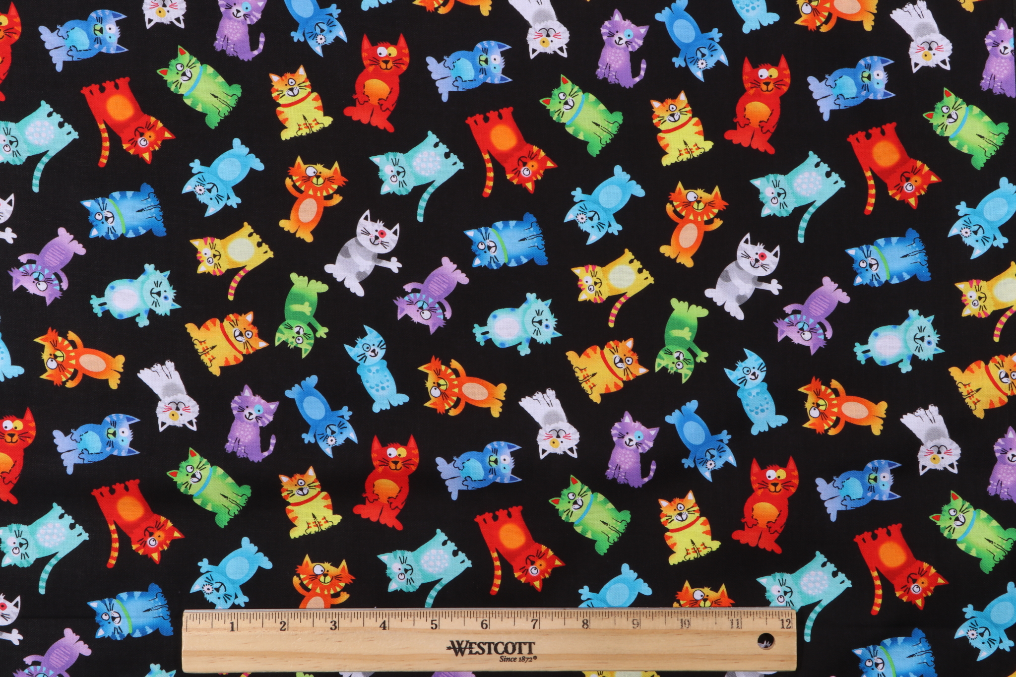 1.38 Yards Gail Cadden Fabrics of SoHo Live Love Meow - Tossed Rainbow Cats Printed Cotton Craft Fabric in Brite for Timeless Treasures Details
