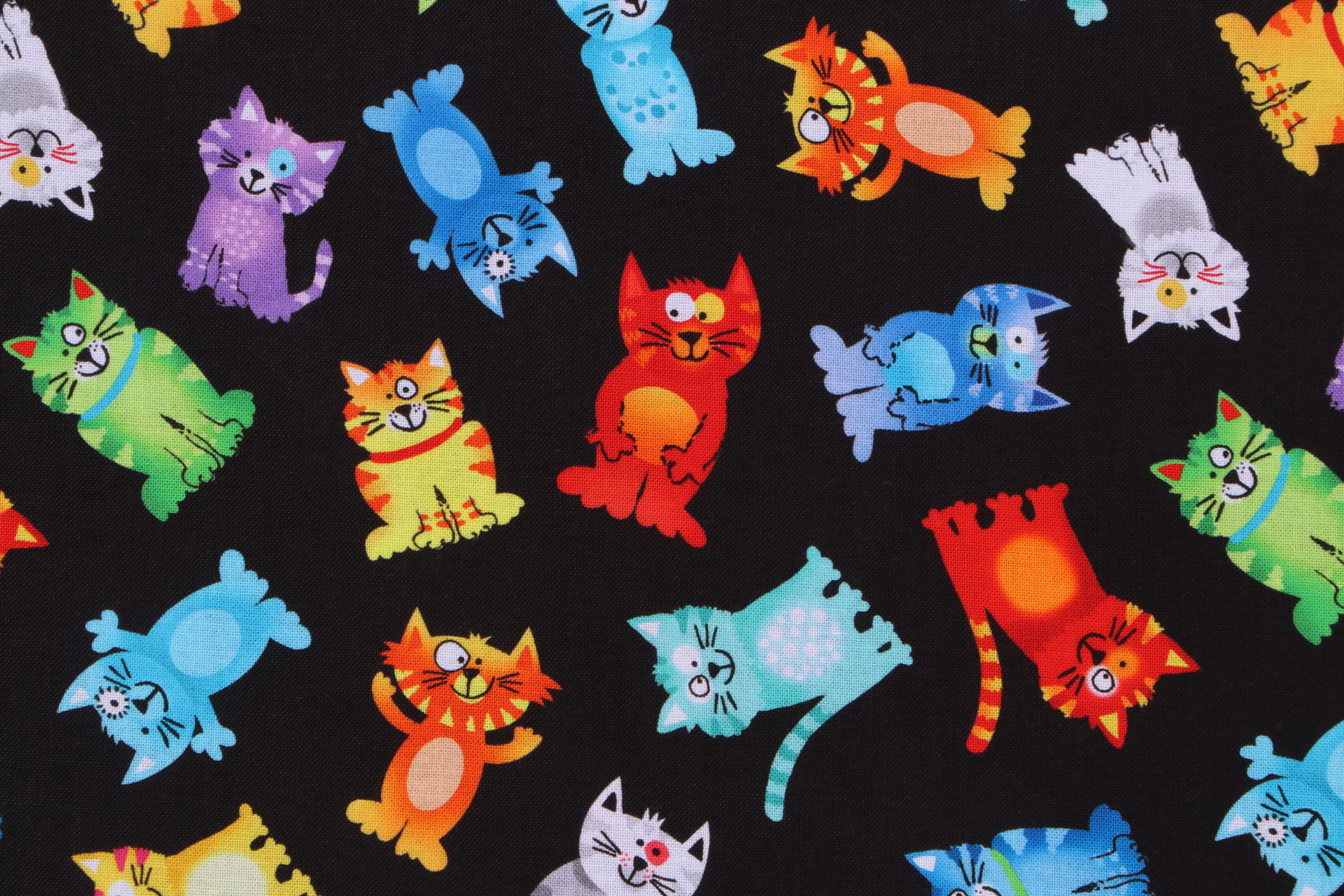 1.38 yards of Gail Cadden Fabrics of SoHo Live Love Meow - Tossed Rainbow Cats printed cotton craft fabric is ready for your next creative endeavor. Ideal for small projects such as pillowcases, fabric napkins, small craft projects, or as accents in larger sewing projects. Note: If you are unsure about the suitability of this fabric for your specific use case please contact us prior to ordering.