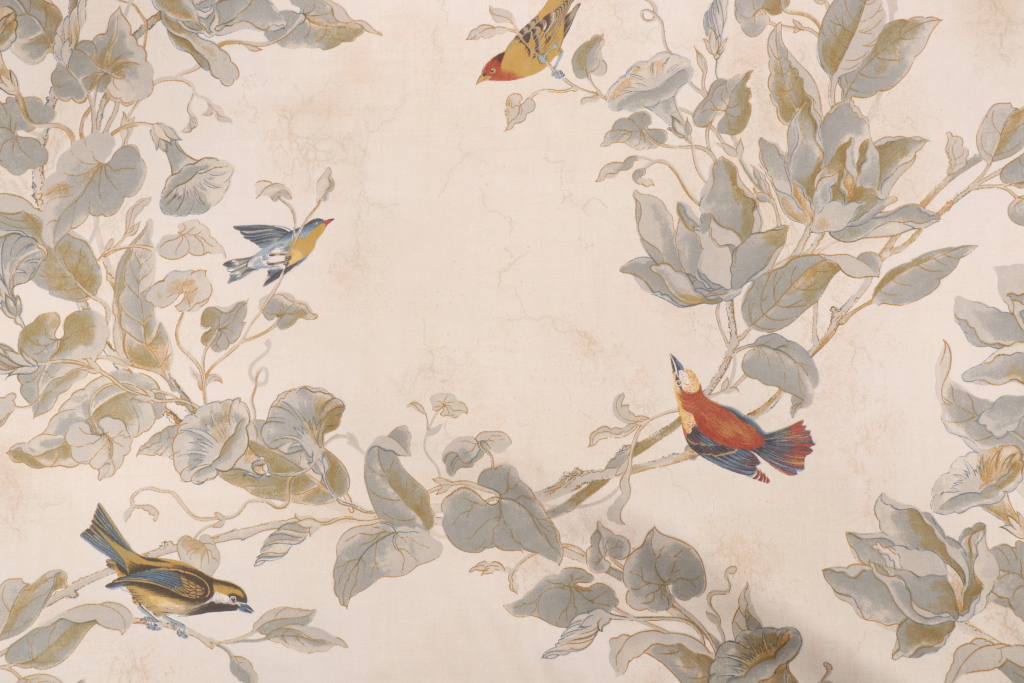Heritage Fabrics Windsong Printed Drapery Fabric in Parchment Details