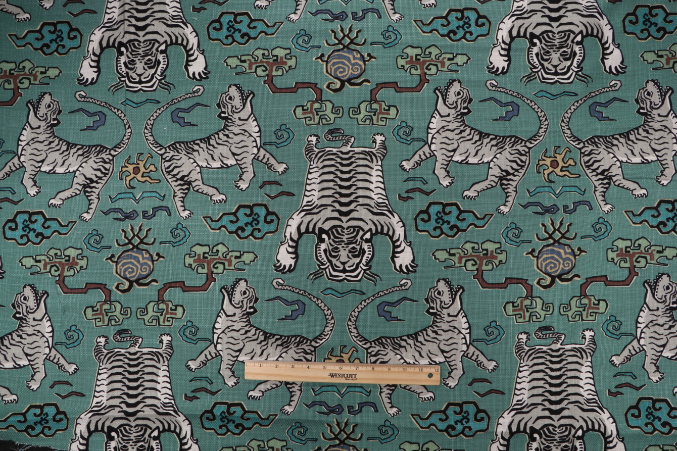 0.75 Yards Hilary Farr Tiger Republic Printed Cotton Blend Drapery Fabric in 210-Jade for Covington Details