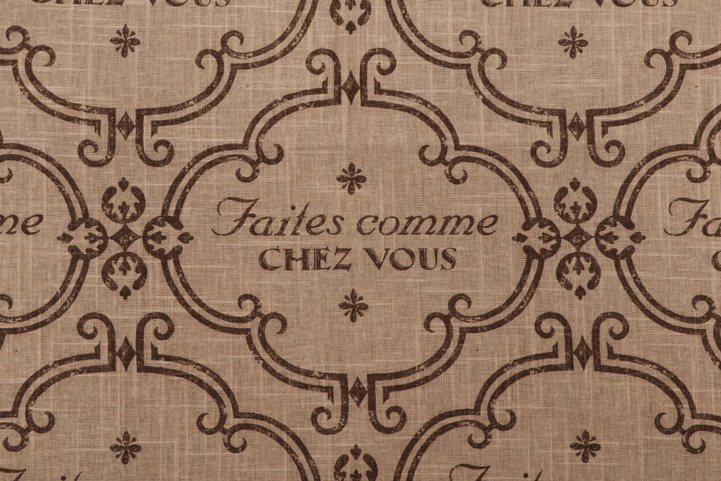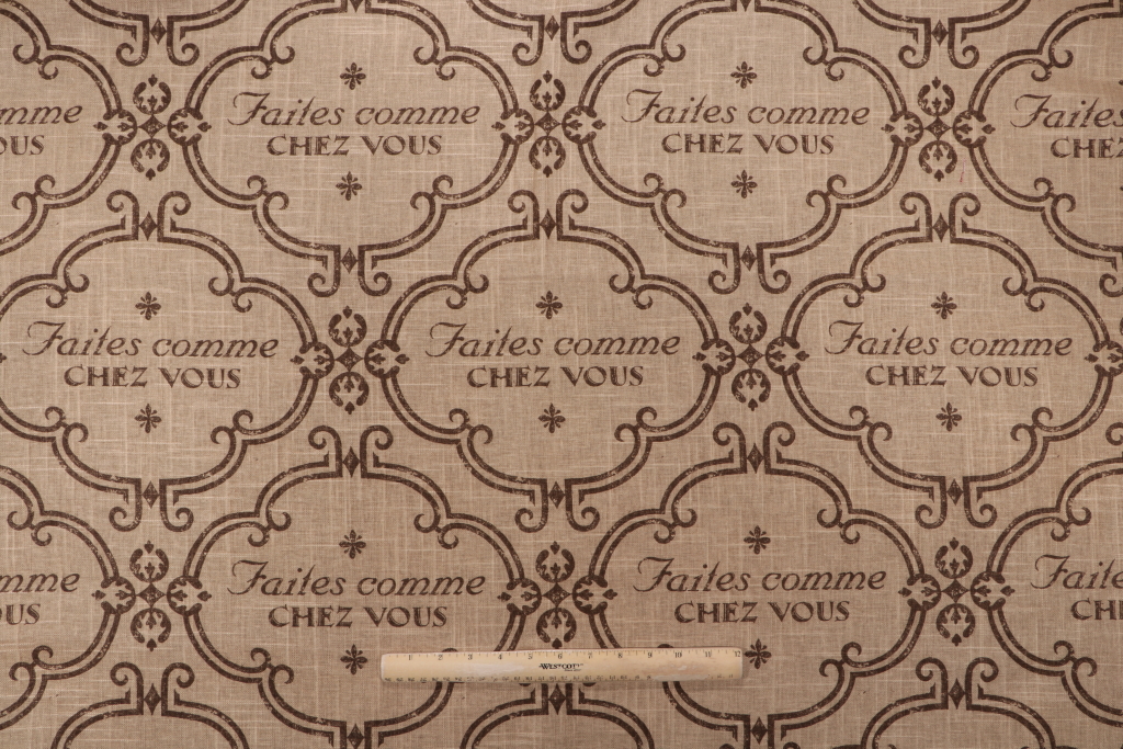 2.88 Yards Jaclyn Smith Home Script Printed Linen Blend Drapery Fabric in Cocoa for Fabricut Details