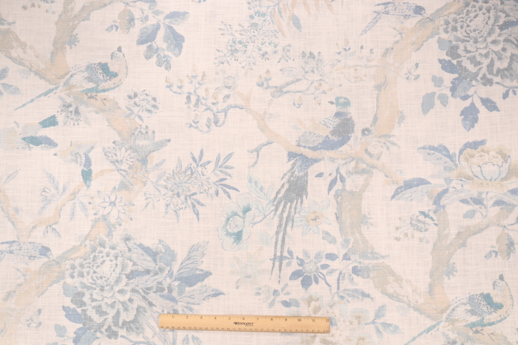 1.5 Yards P Kaufmann Menara Printed Linen Blend Drapery Fabric in Marina Details