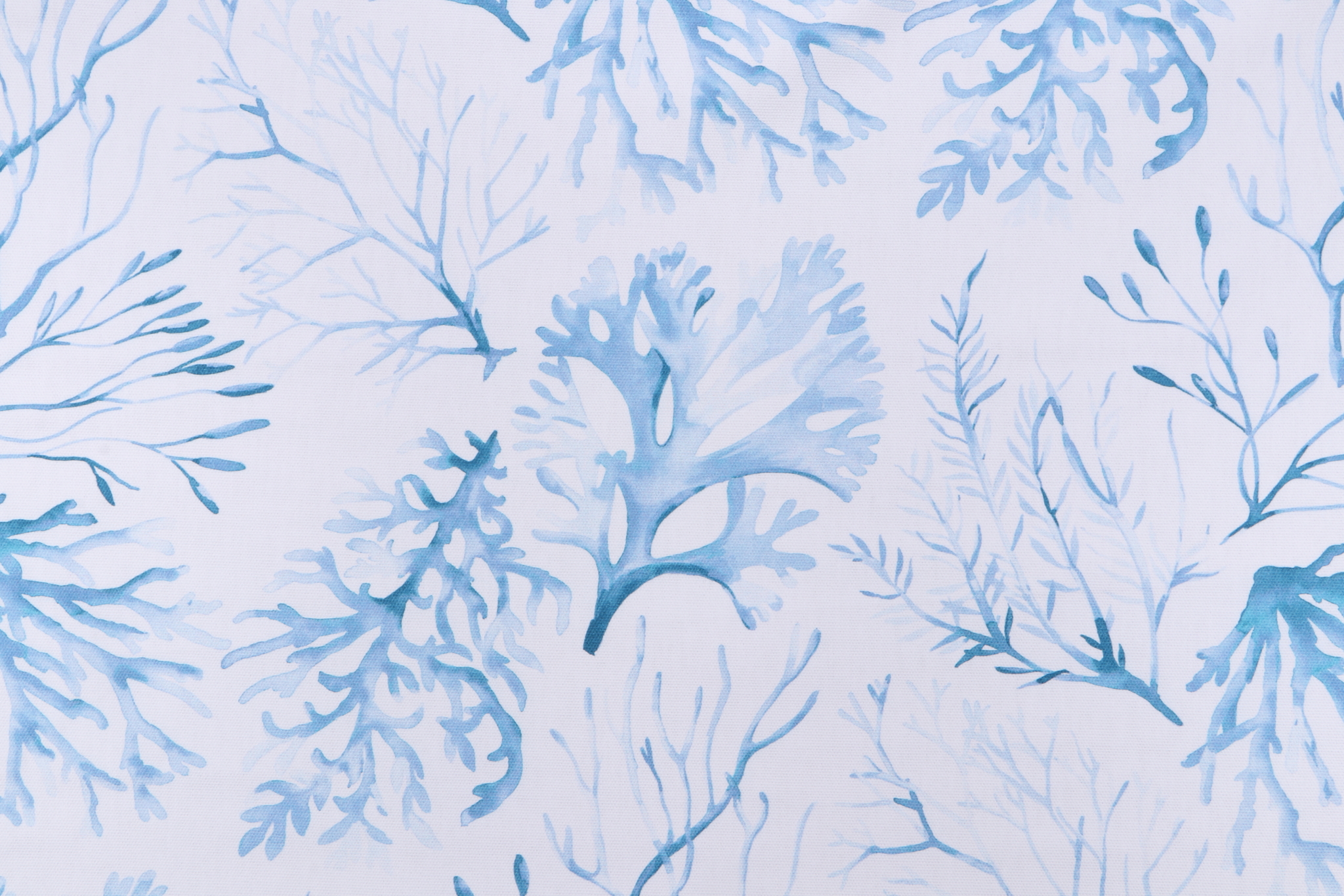P Kaufmann Seaside Coral Printed Cotton Drapery Fabric in Ocean Details