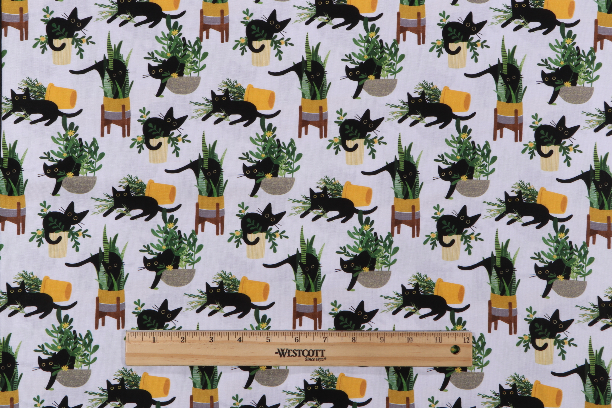 2.38 Yards Leezaworks A Tall Yarn - Just Purrlanted Printed Cotton Craft Fabric in White for Dear Stella Details