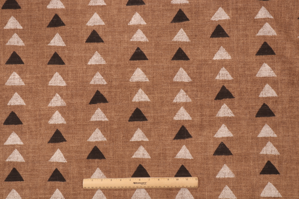 PK Lifestyles Nomadic Triangle Printed Linen Blend Drapery Fabric in Clay is a remnant, which is sold as a whole piece.