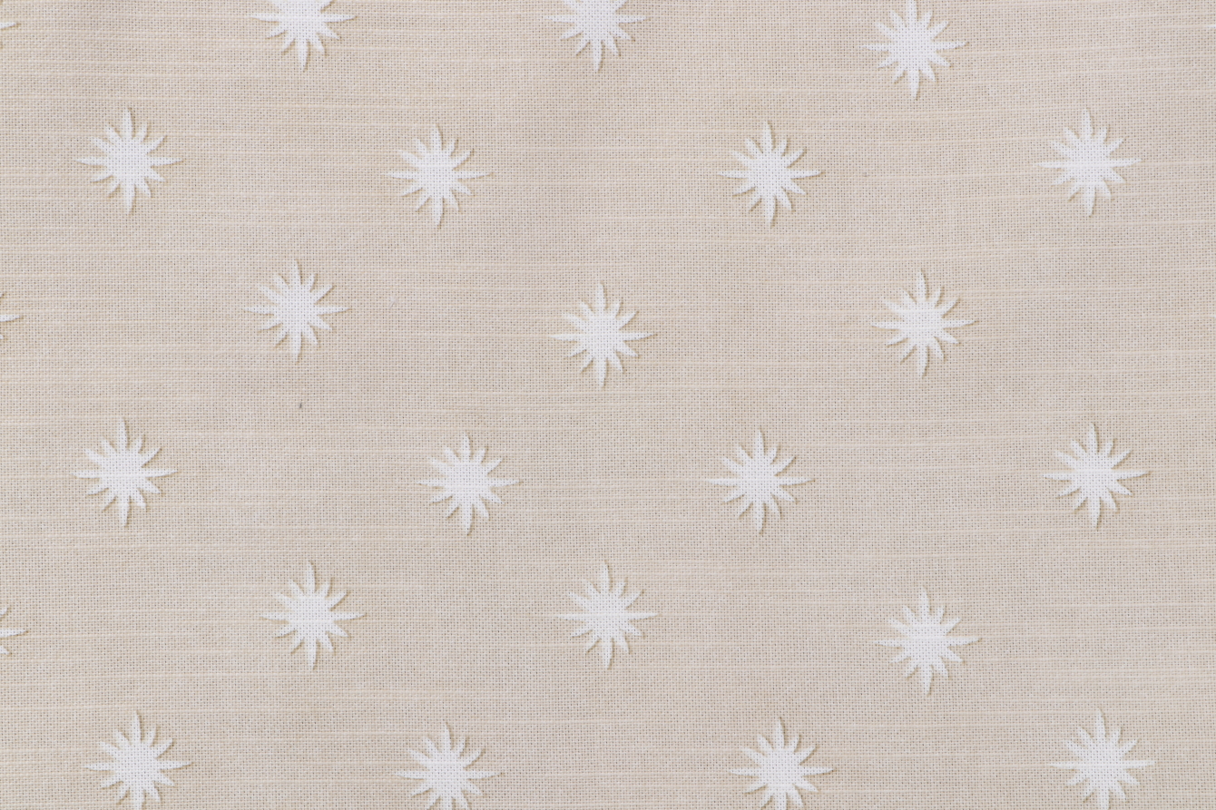 PK Lifestyles Starry Printed Cotton Drapery Fabric in Twine is a remnant. Fabric remnants refer to leftover pieces of fabric from production runs at manufacturing sites or pieces that remain from by the yard stock. The lengths of these remnants can vary from a few inches to several yards and are typically sold at a reduced price, since they represent remaining inventory.