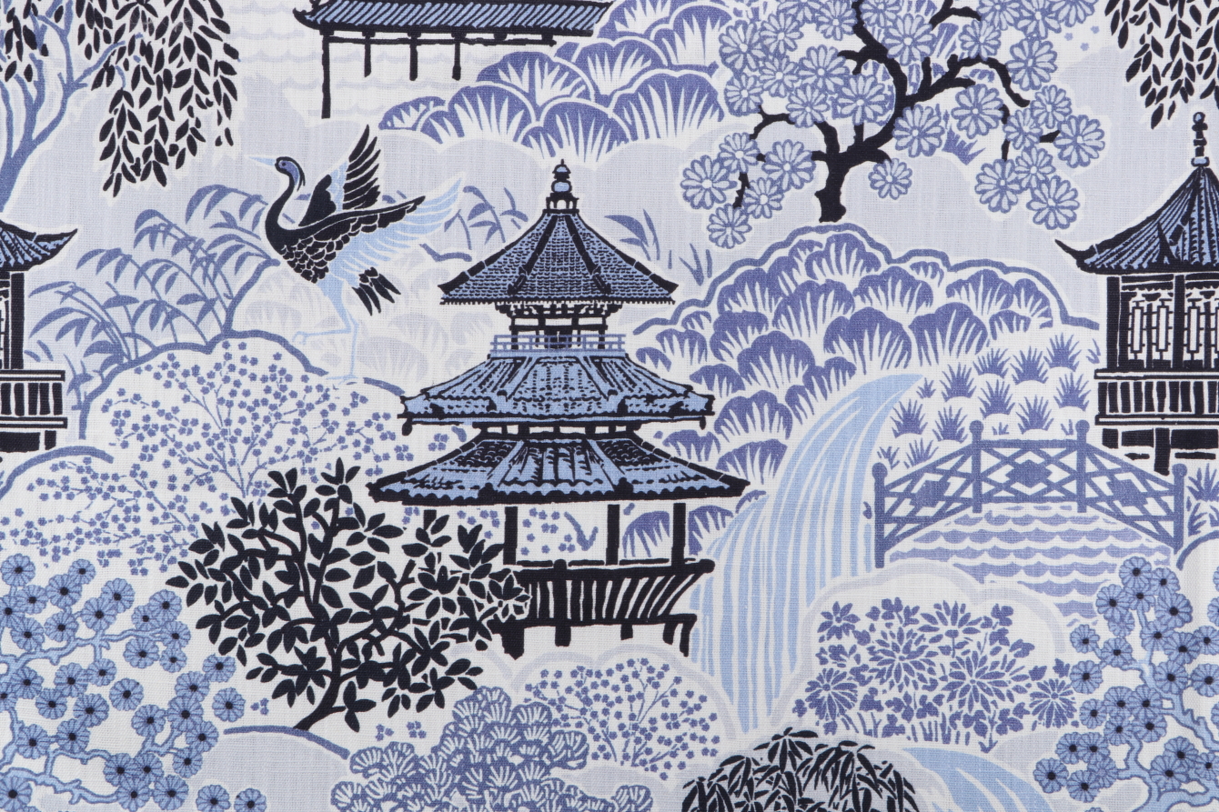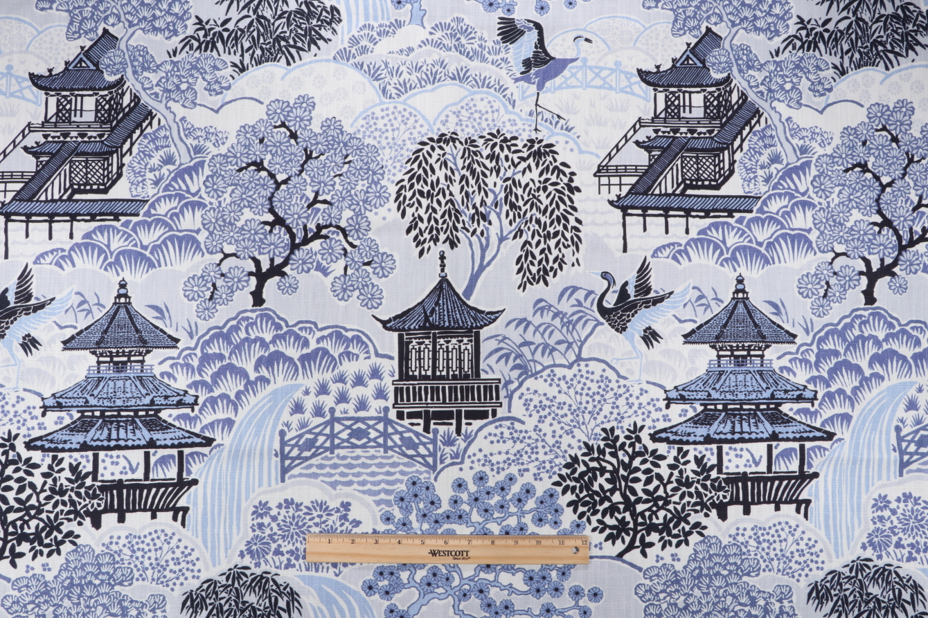 2 Yards Mill Creek Tea House-Briard Printed Cotton Blend Drapery Fabric in Ocean Blue Details