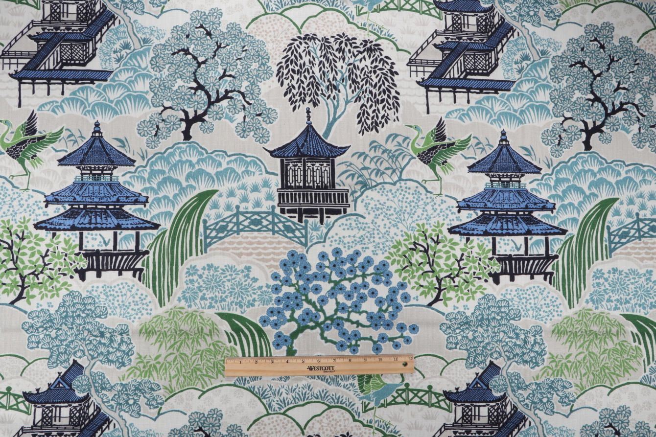 1.25 Yards Mill Creek Tea House-Briard Printed Cotton Blend Drapery Fabric in Seawind Details