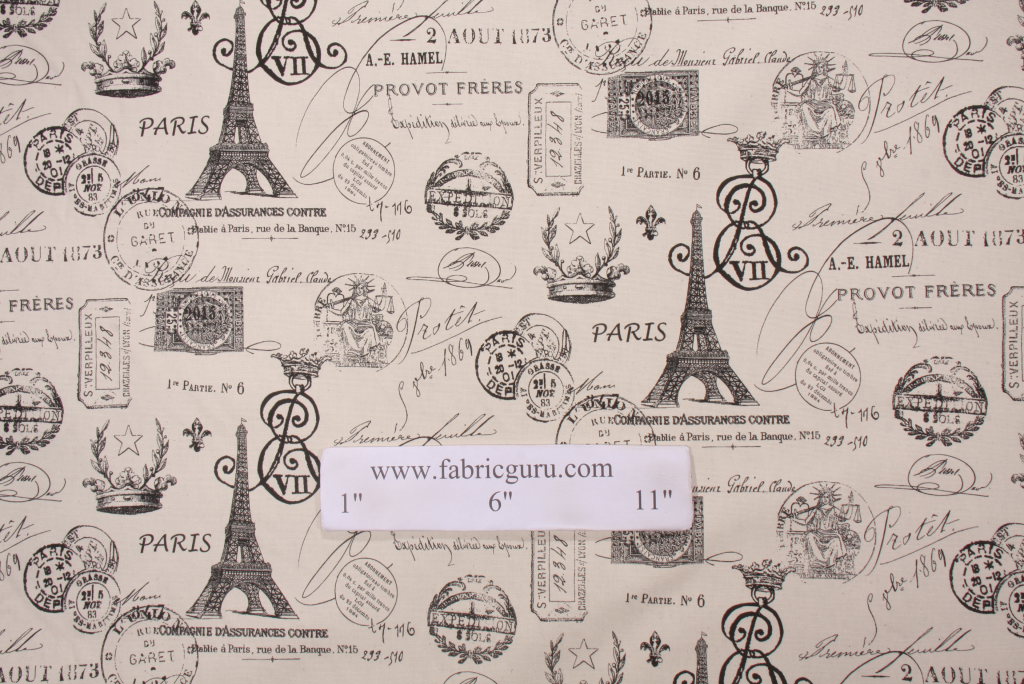 Premier French Stamp Printed Cotton Drapery Fabric in Onyx/Natural is a remnant, which is sold as a whole piece.